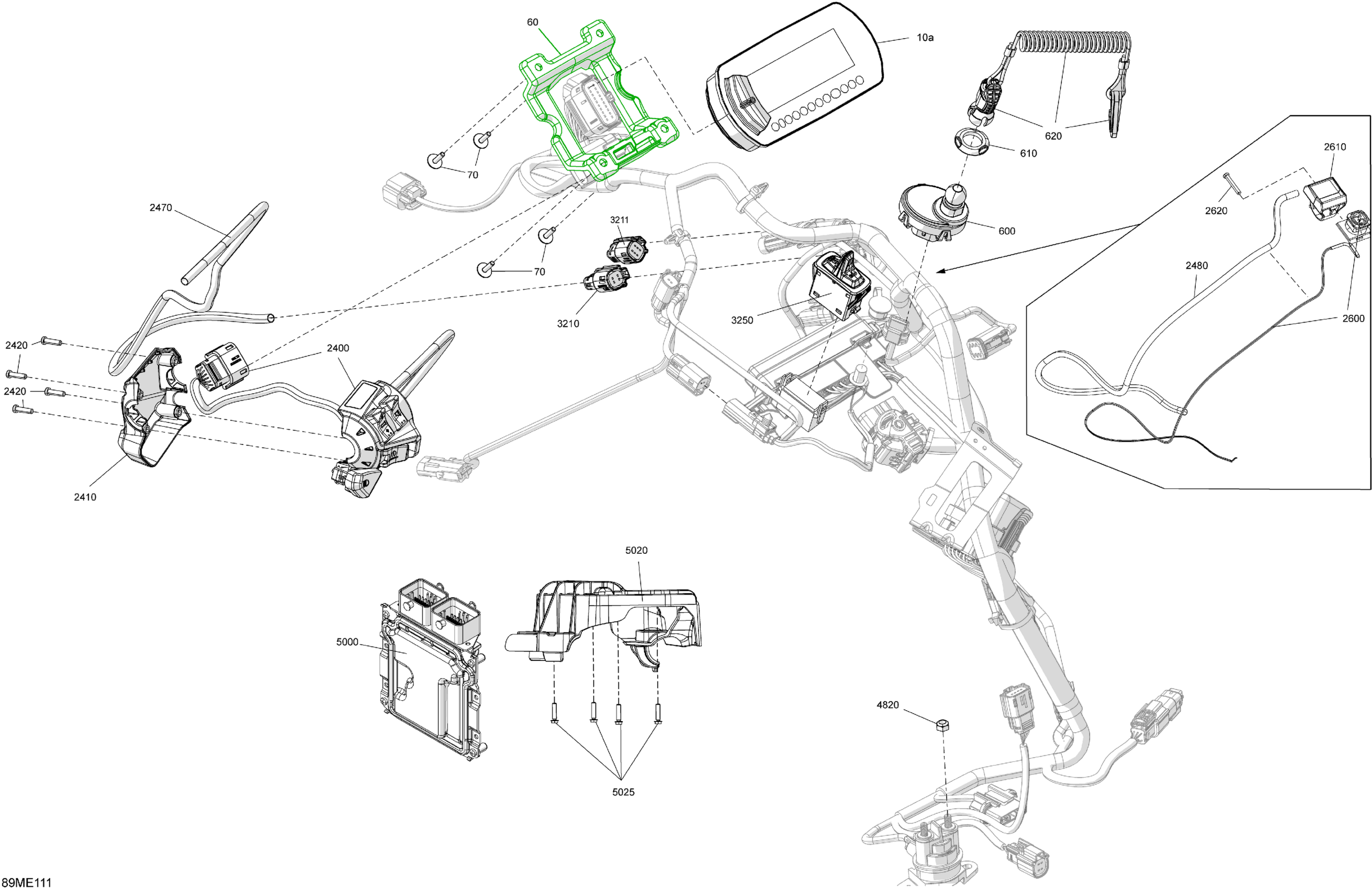 Ski-Doo North America - EXPEDITION - 900 ACE - SPORT - KDSA - Neo Yellow - 154X16X1.5CH Track - 2025 08- Electric - Upper Section Diagram