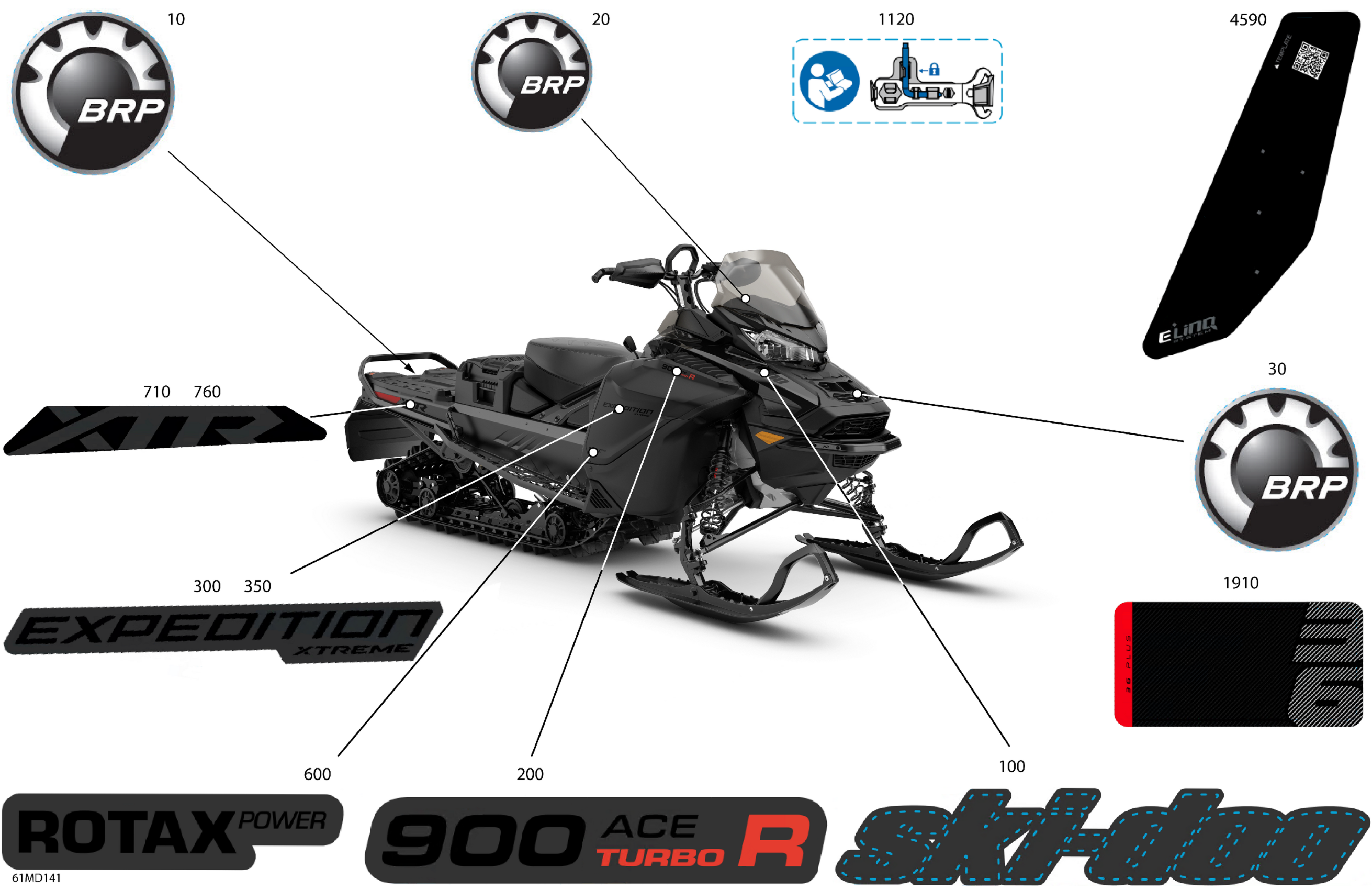Ski-Doo North America - EXPEDITION 900 ACE Turbo R - Xtreme - APRD - Deep Black - 154X20X1.8CST8 Track, 2024 07- Body - Decals Diagram