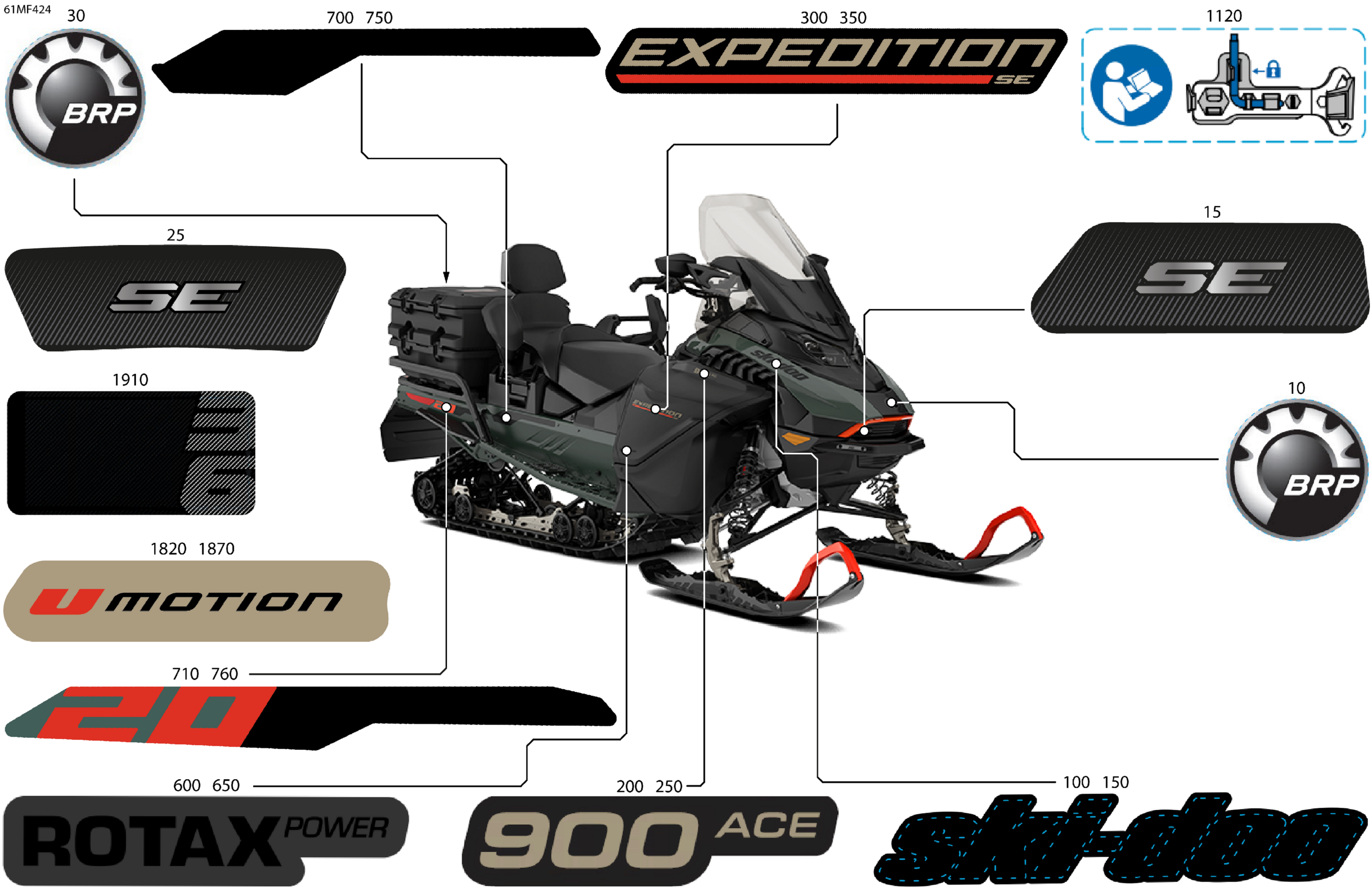 Ski-Doo North America - EXPEDITION - SE - 900 ACE - AETK - Tundra Green - 20X154X1.5CSS Track, 2026 07- Body - Decals Diagram