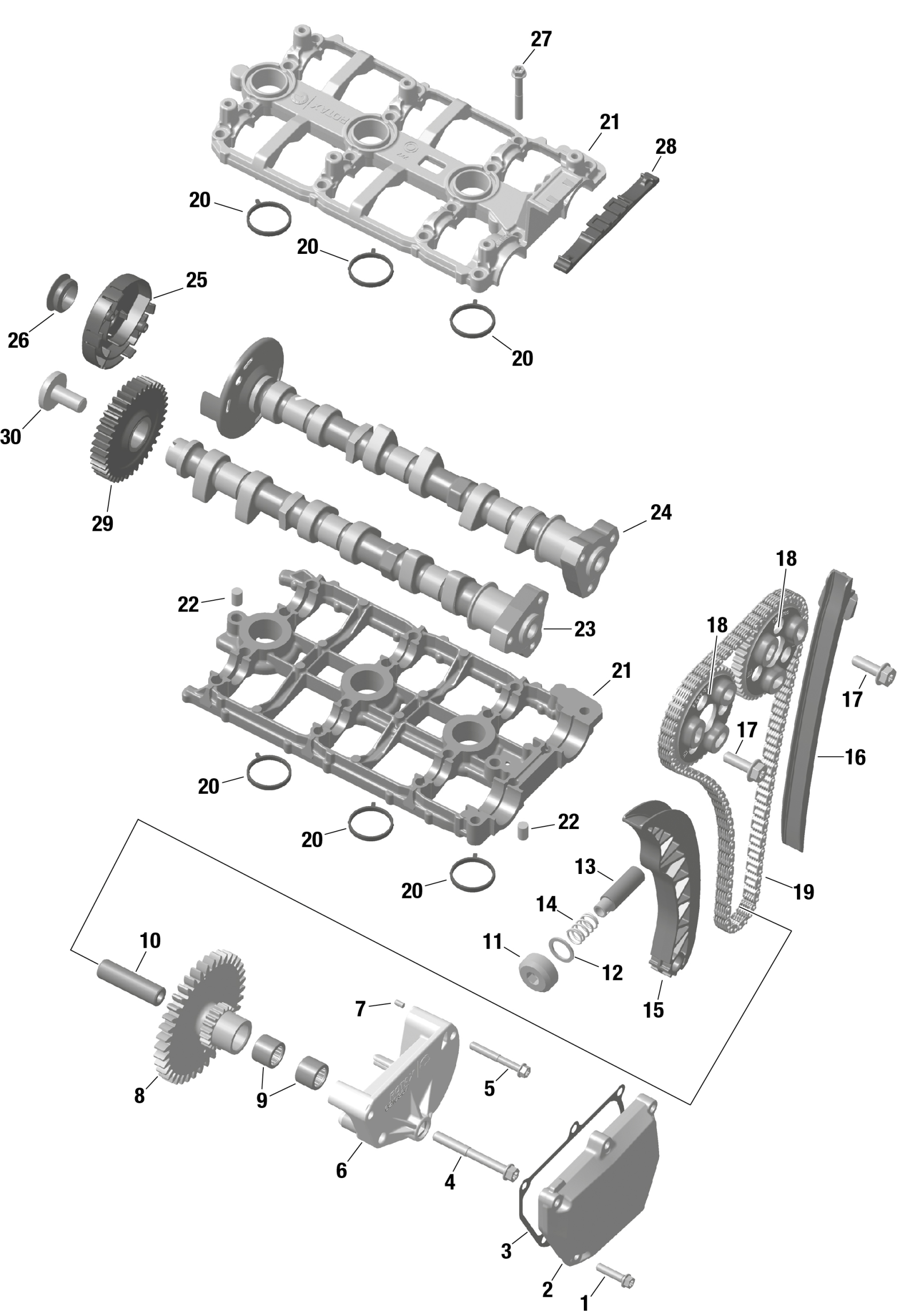 Can-Am F3 T - H6RA - T - White Pearl, 2024 ROTAX - Valve Train Diagram