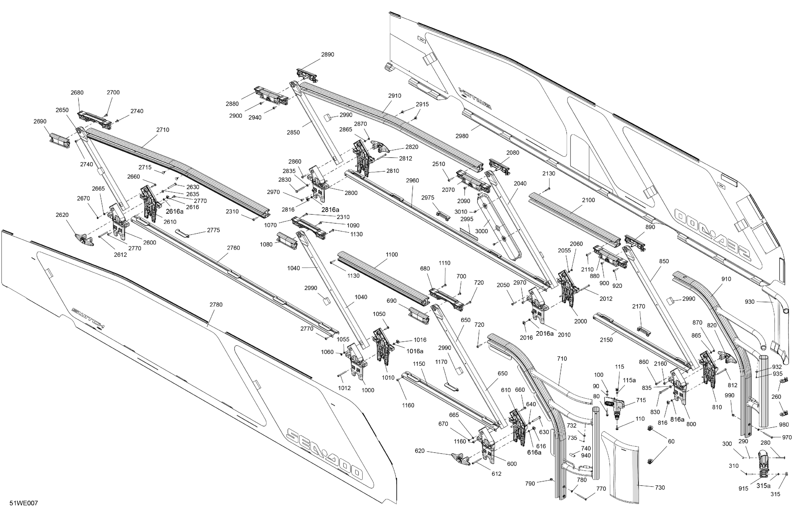 Sea-doo North America - FISH 18 - 170 - 52SG - Olive Night - Trailer Paint - CAT2B - 2025 11- GUARD RAILS - System Assembly Diagram