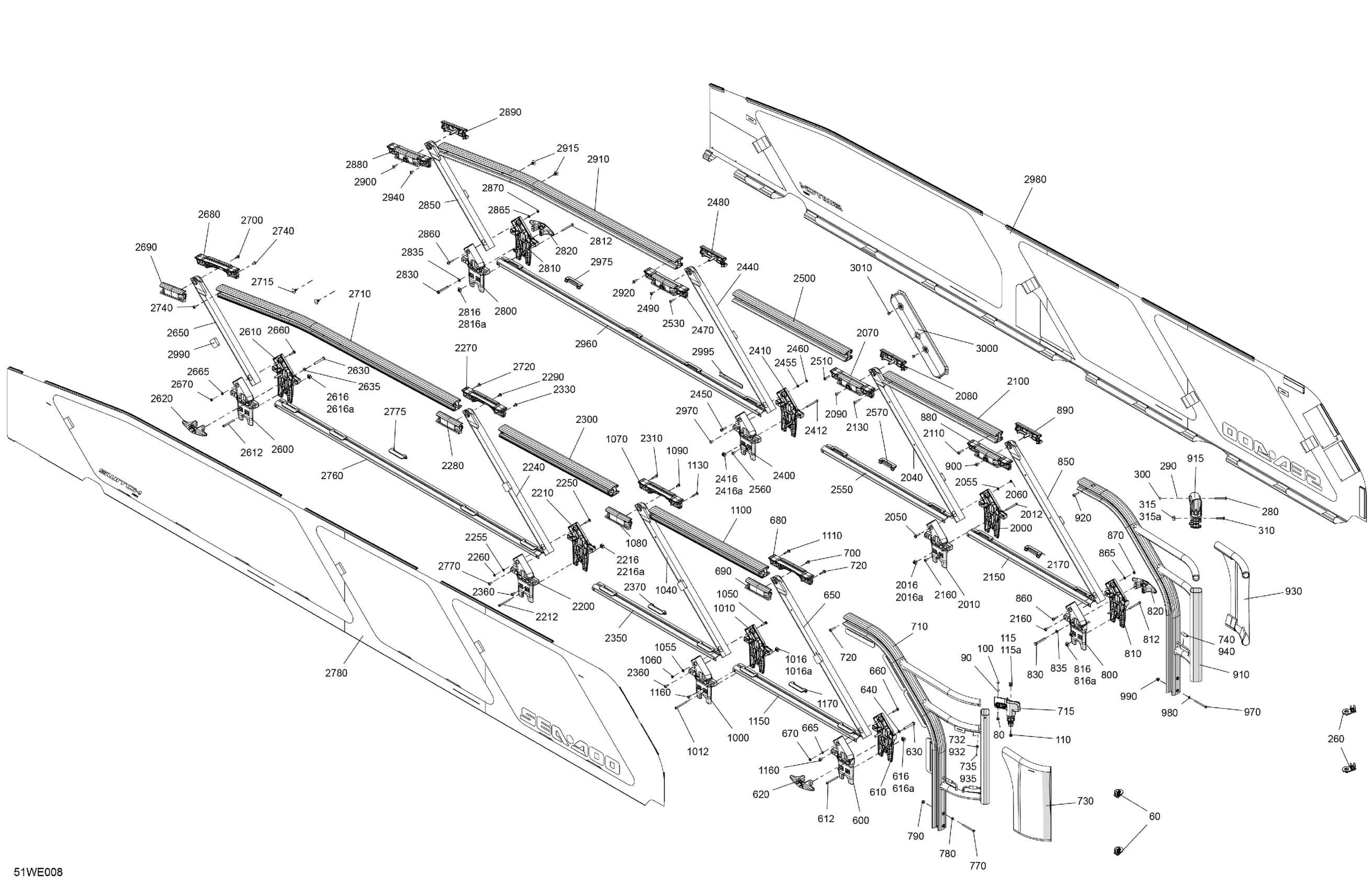 Sea-doo North America - FISH 21 - 230 - 53SG - Olive Night - Trailer Paint - CAT2B - 2025 11- GUARD RAILS - System Assembly Diagram