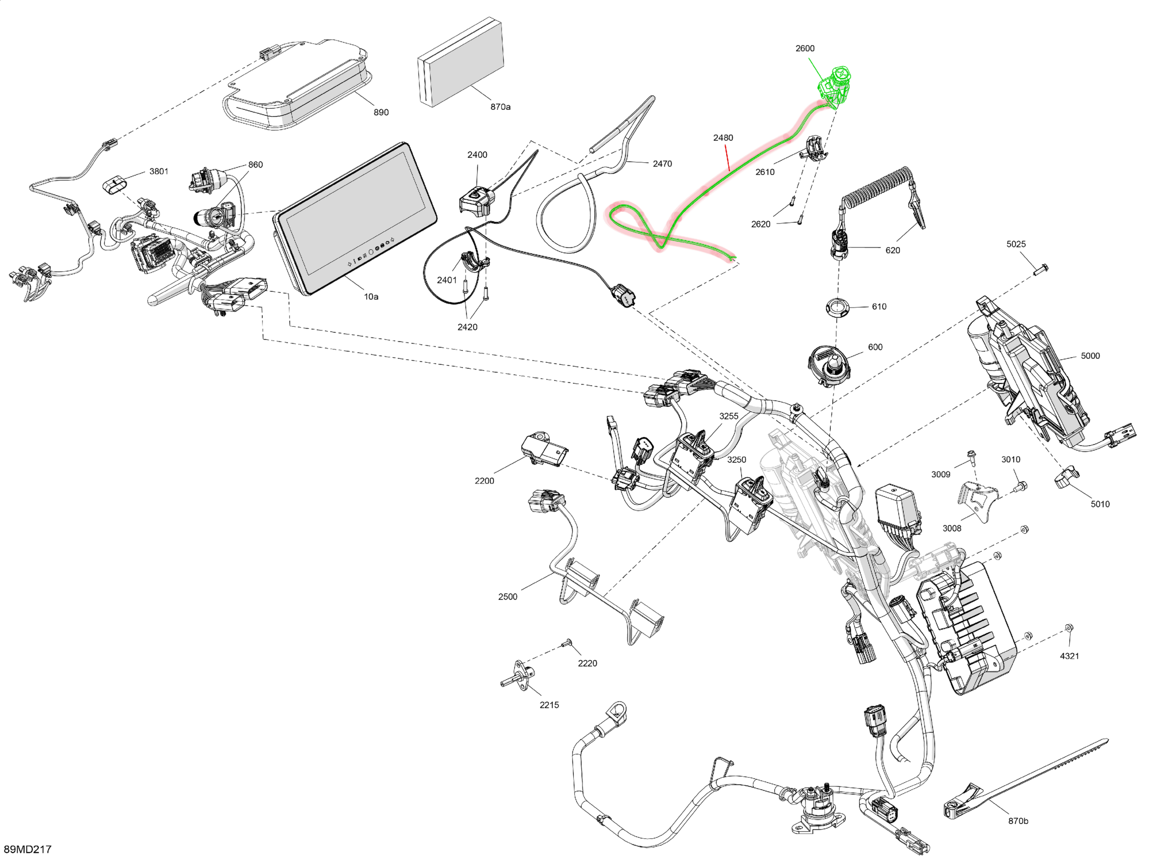 Ski-Doo North America - FREERIDE 850 E-TEC - 146 - VBRD - Neo Mint - 146X15X2.5P Track, 2024 08- Electric - Upper Section Diagram