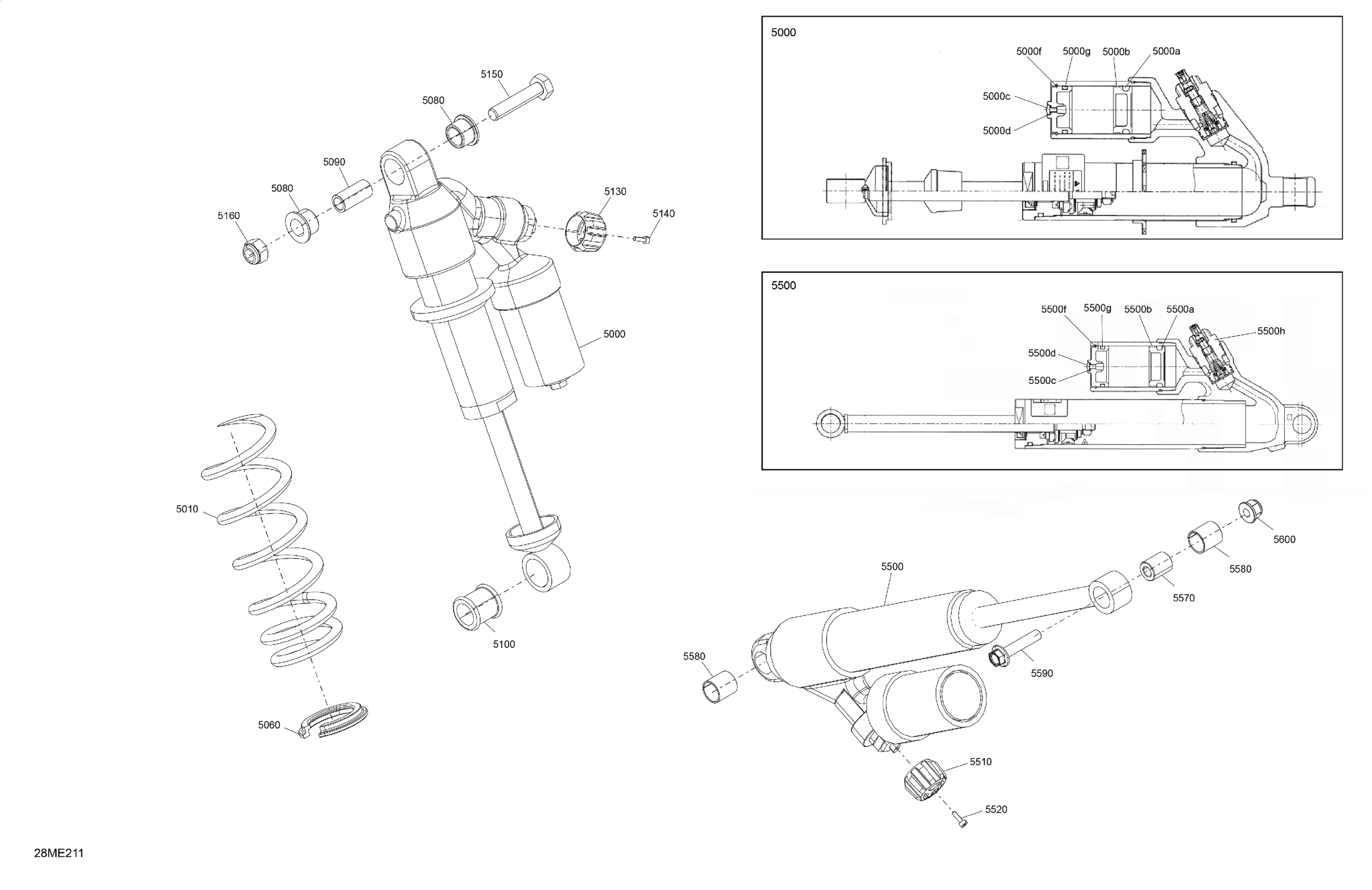 Ski-Doo North America - FREERIDE - 850 E-TEC - 146 - VBSB - Flare Yellow HG - 146X15X2.5P Track - 2025 05- Suspension - Rear Shocks Diagram