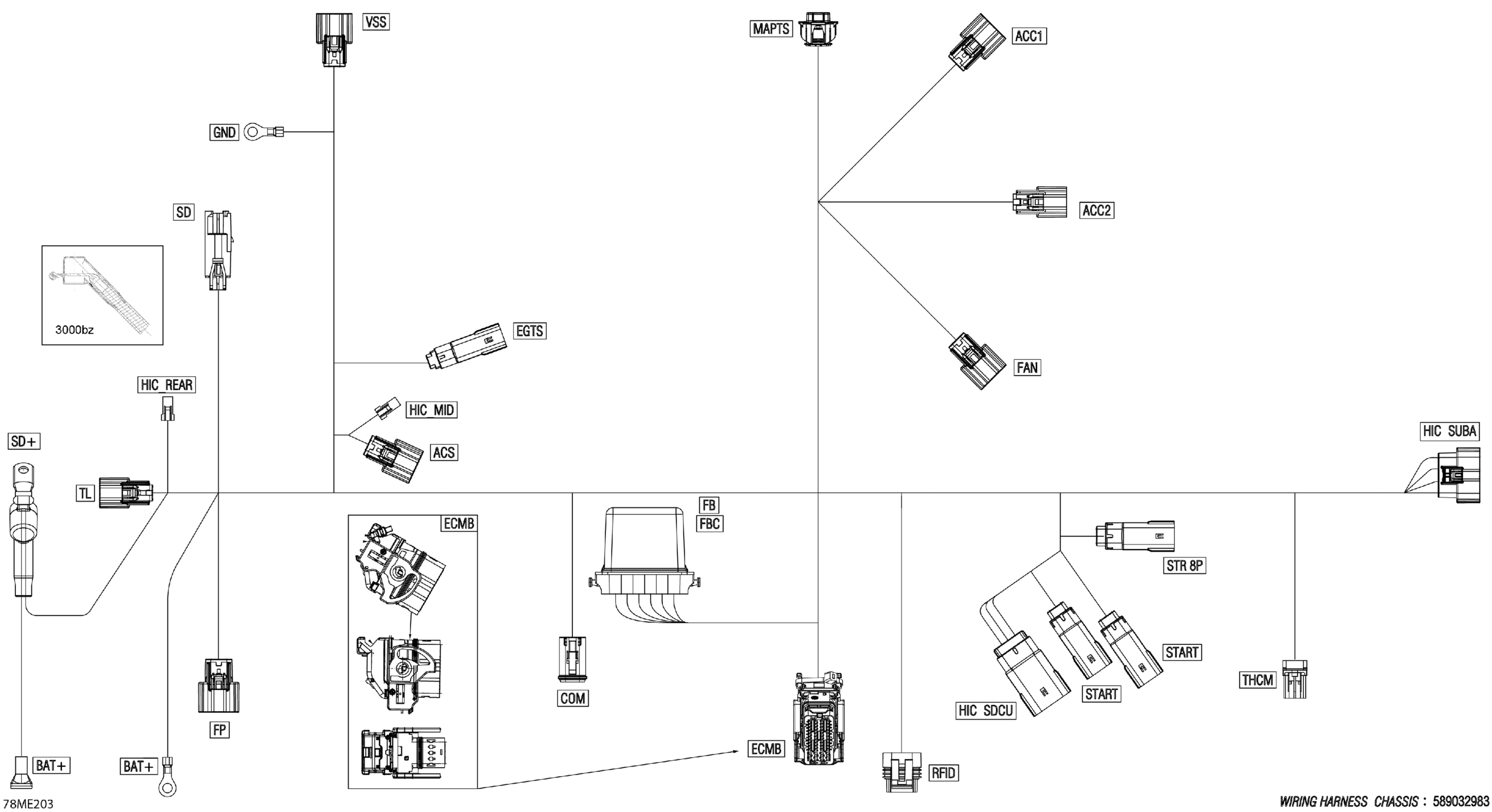 Ski-Doo FREERIDE - 850 E-TEC - 146 - VBSE - Flare Yellow HG - 146X15X2.5P Track - 2025 Electric - Main Harness - 515179405 Diagram