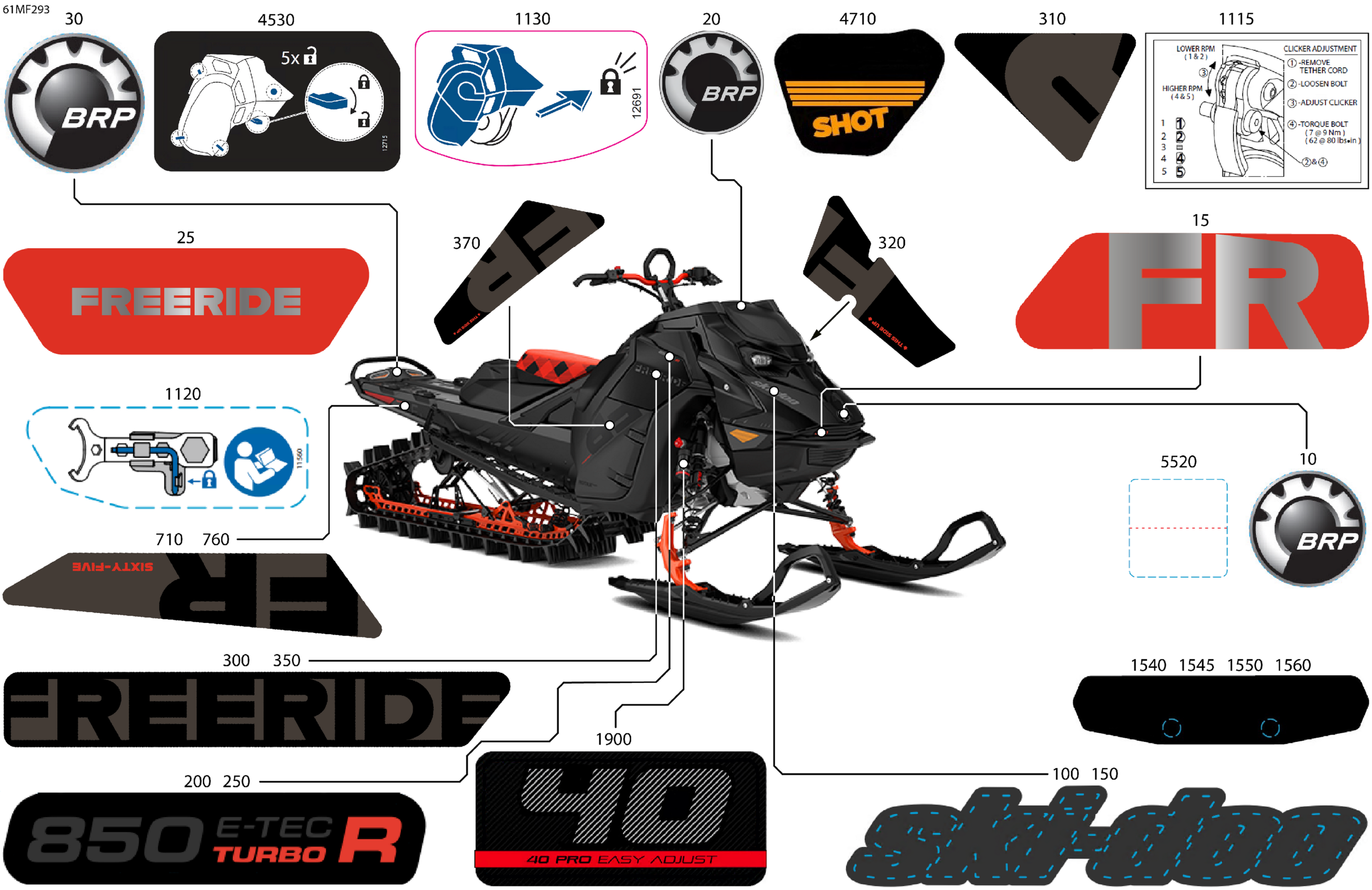 Ski-Doo North America - FREERIDE - STD - 850 E-TEC Turbo R - VDTF - Deep Black - 15X165X3P4 Track, 2026 07- Body - Decals Diagram