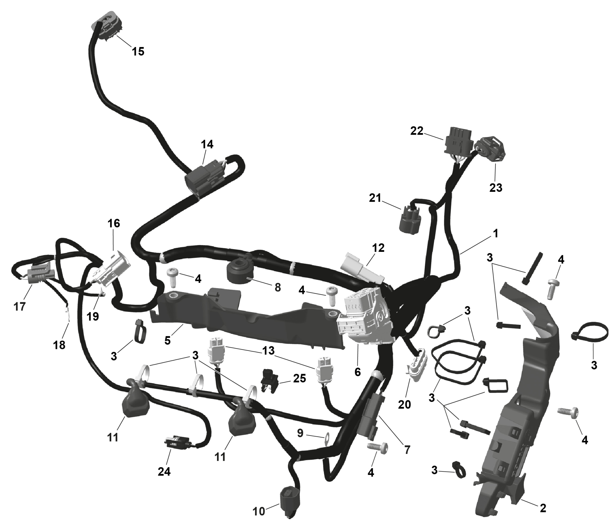 Ski-Doo FREERIDE - STD - 850 E-TEC Turbo R - VKTA - Deep Black - 15X146X2.5P Track, 2026 ROTAX - Engine Harness And Electronic Module Diagram