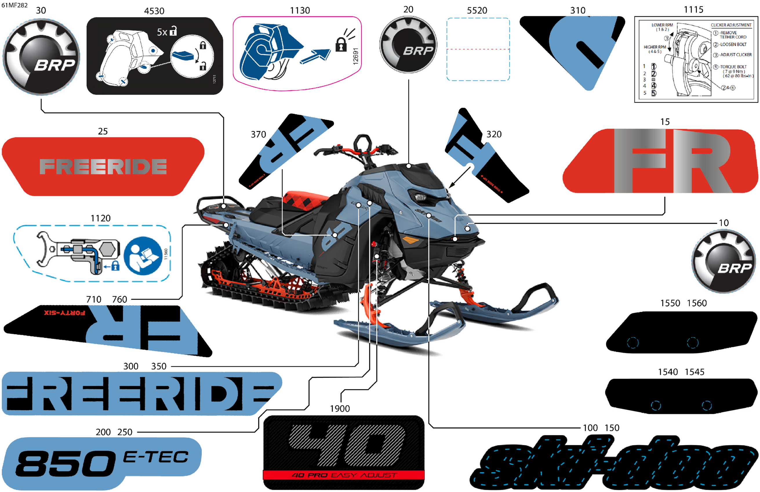 Ski-Doo North America - FREERIDE - STD - 850 E-TEC - VBTC - Scandi Blue - 15X146X2.5P Track, 2026 07- Body - Decals Diagram