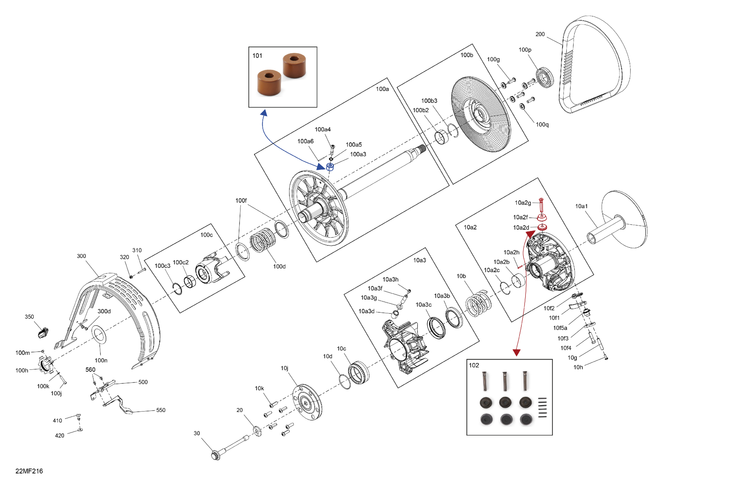 Ski-Doo North America - FREERIDE - STD - 850 E-TEC - VCTD - Scandi Blue - 15X154X3P4 Track - SHOT starter, 2026 04- Drive - Pulley Diagram