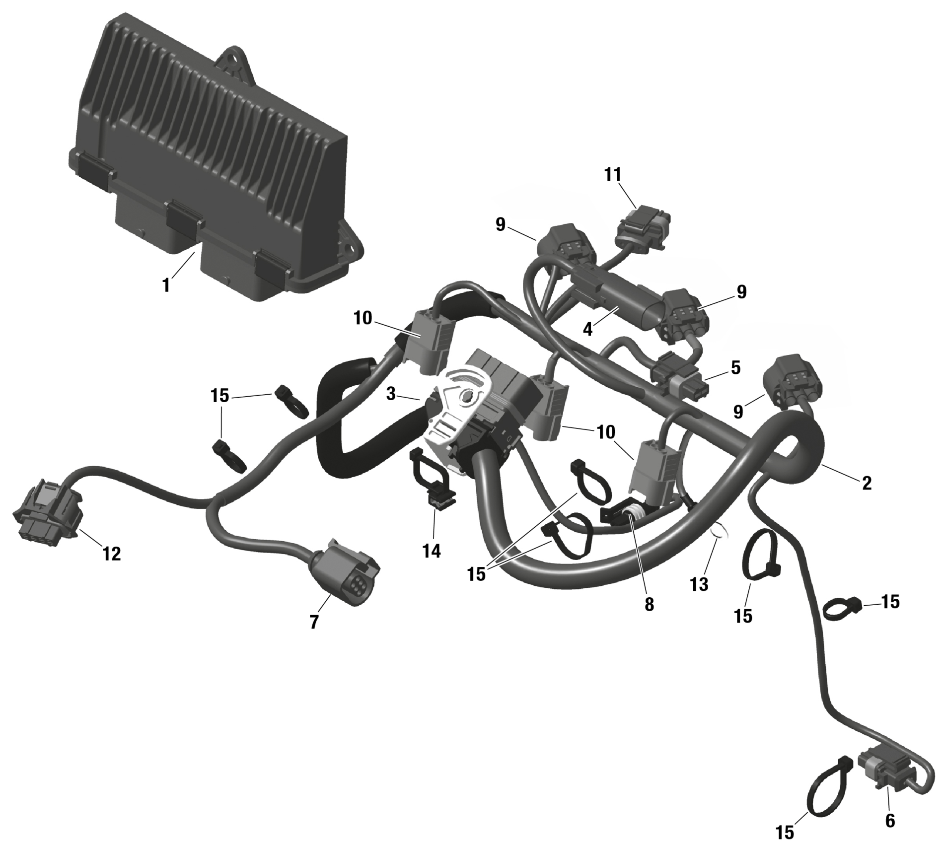 Ski-Doo GRAND TOURING 900 ACE - LE - EBRA - Deep Black - 137X15X1.25ST3 Track, 2024 ROTAX - Engine Harness And Electronic Module Diagram