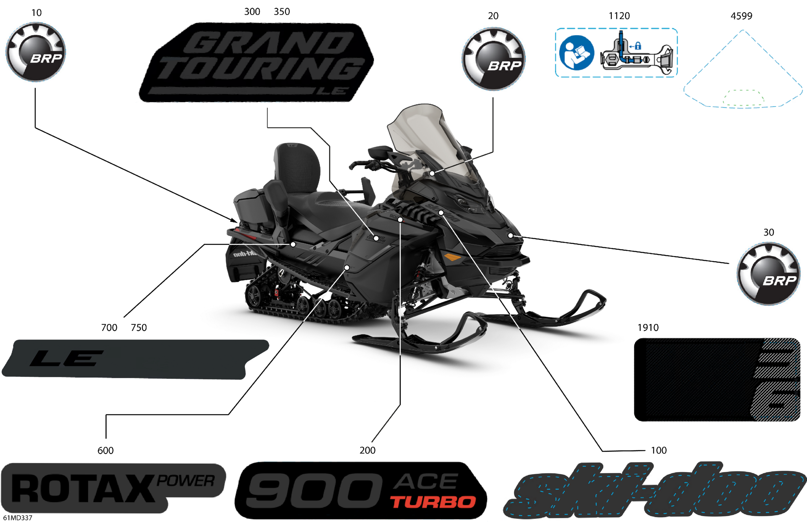 Ski-Doo North America - GRAND TOURING 900 ACE Turbo - LE - ERRA - Deep Black - 137X15X1.25ST3 Track, 2024 07- Body - Decals Diagram