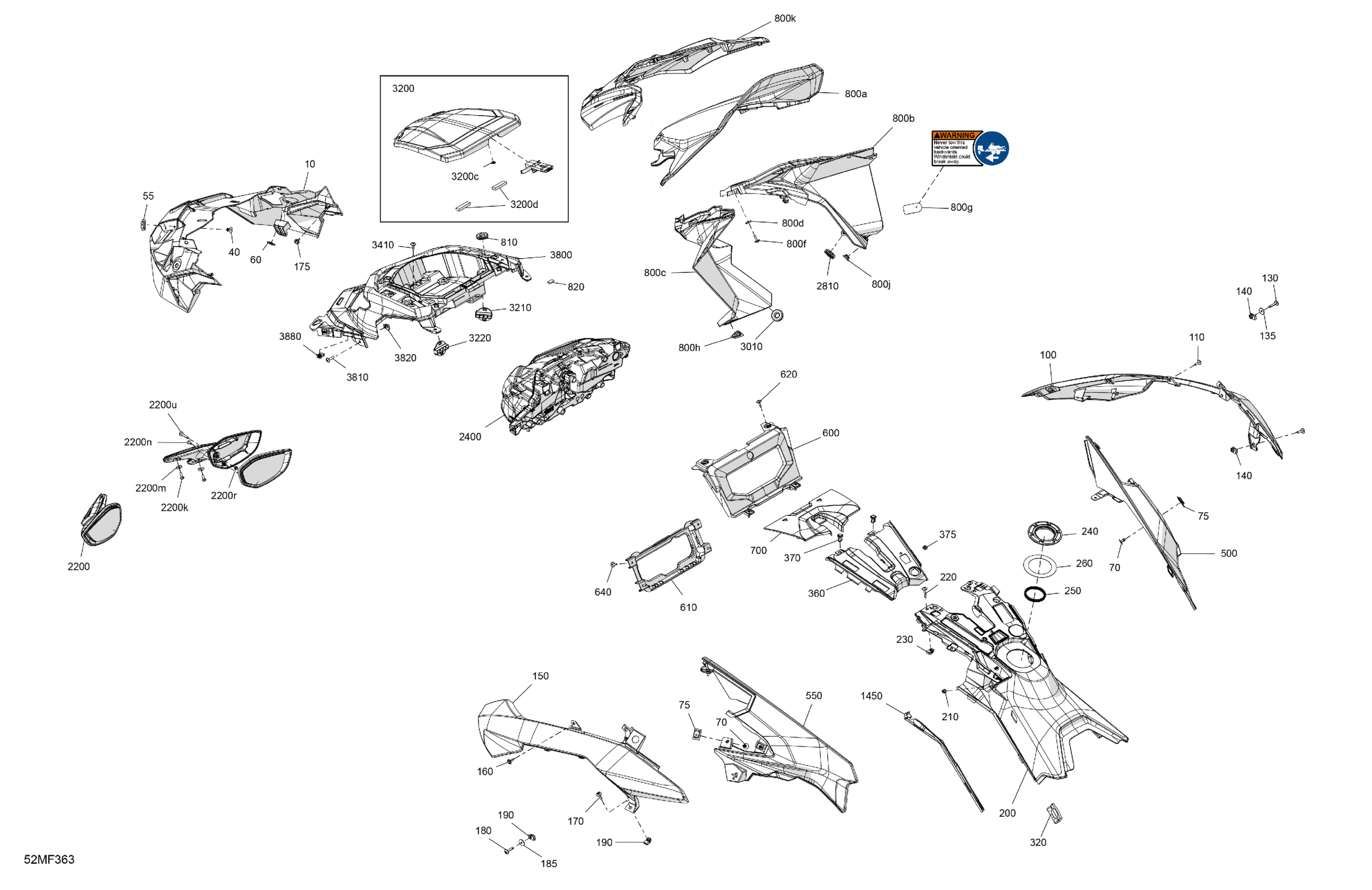 Ski-Doo North America - GRAND TOURING - LE - 900 ACE - EBTA - Deep Black - 15X137X1.25ST3 Track, 2026 07- Body - Hood Diagram