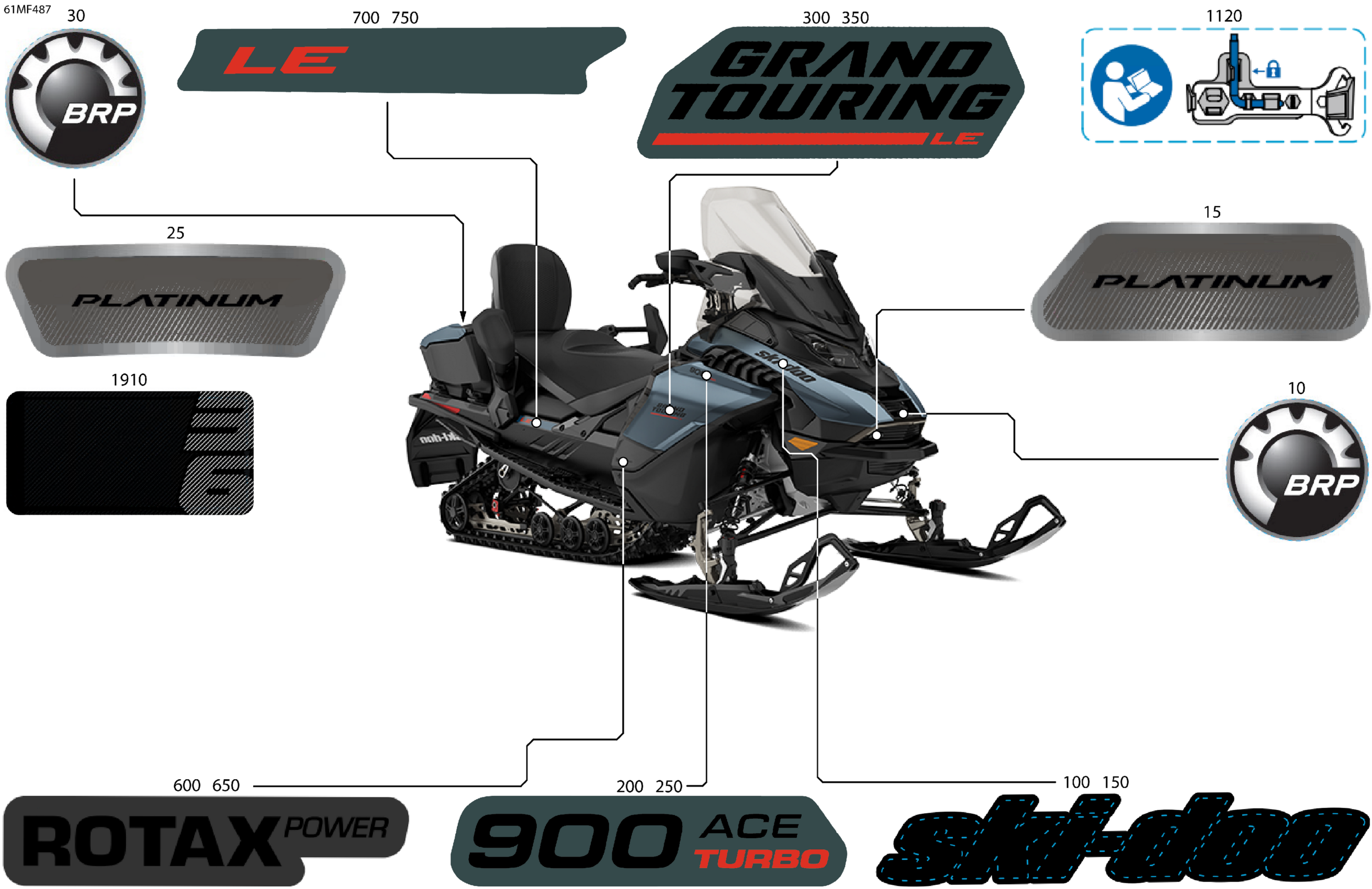 Ski-Doo North America - GRAND TOURING - LE with Luxury Package - 900 ACE TURBO - ERTB - Mineral Blue - 15X137X1.25ST3IR Track, 2026 07- Body - Decals Diagram