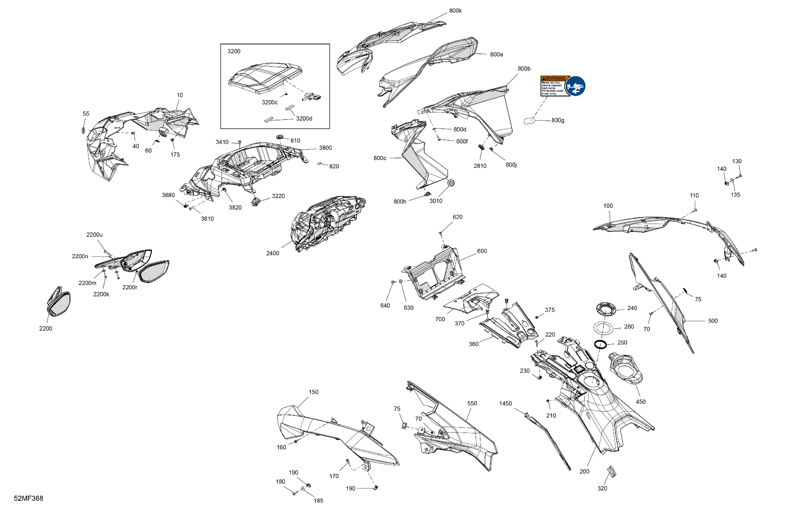 Ski-Doo North America - GRAND TOURING - LE with Luxury Package - 900 ACE TURBO - ERTB - Mineral Blue - 15X137X1.25ST3IR Track, 2026 07- Body - Hood Diagram