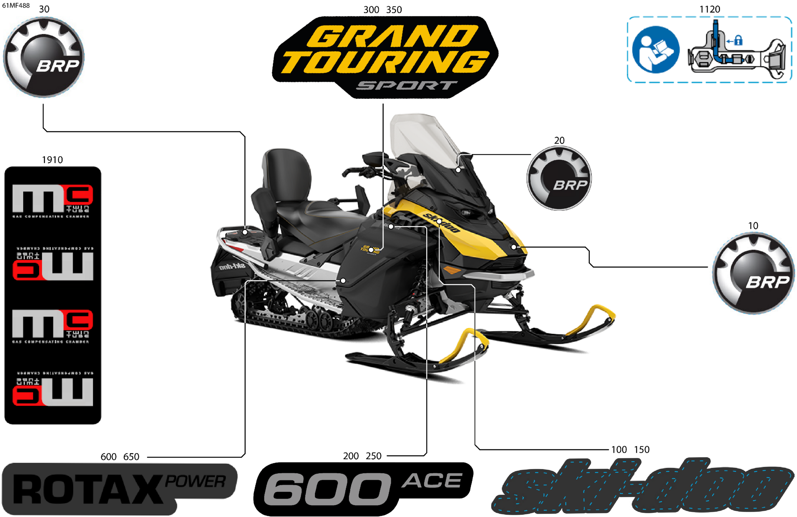 Ski-Doo North America - GRAND TOURING - SPORT - 600 ACE - ETTA - Neo Yellow - 15X137X1.25ST3 Track, 2026 07- Body - Decals Diagram