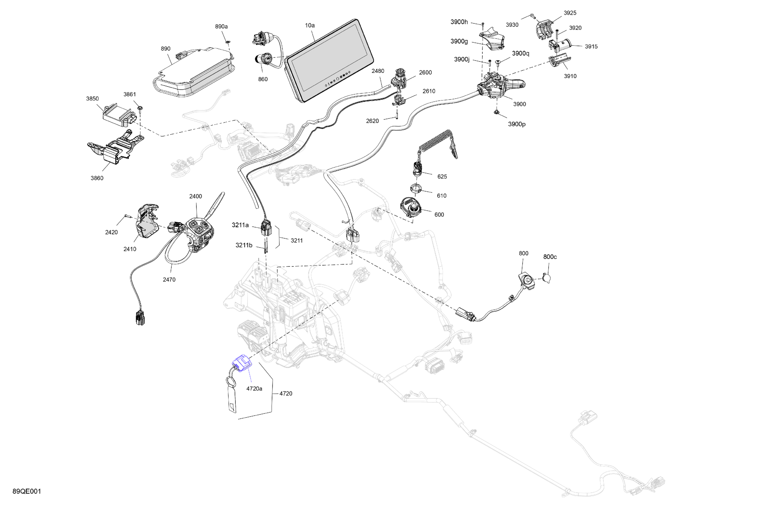 Ski-Doo North America - GRAND TOURING - SPORT - ESSA - Bright White - 120X14X0.75LFF Track - 2025 08- Electric - Upper Section Diagram
