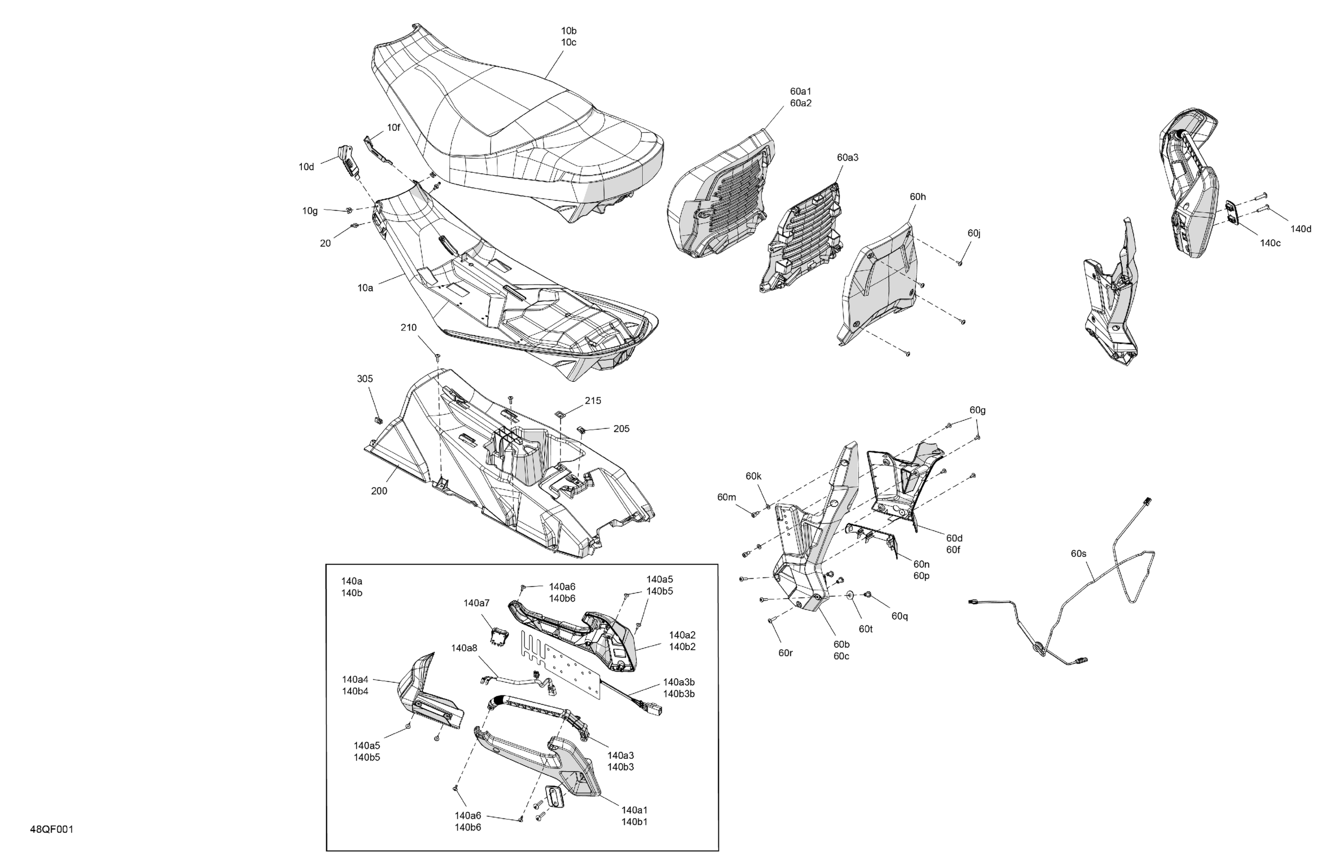 Ski-Doo North America - GRAND TOURING - SPORT - ESTA - Bright White - 14X120X0.75LFF Track, 2026 07- Body - Seat Diagram
