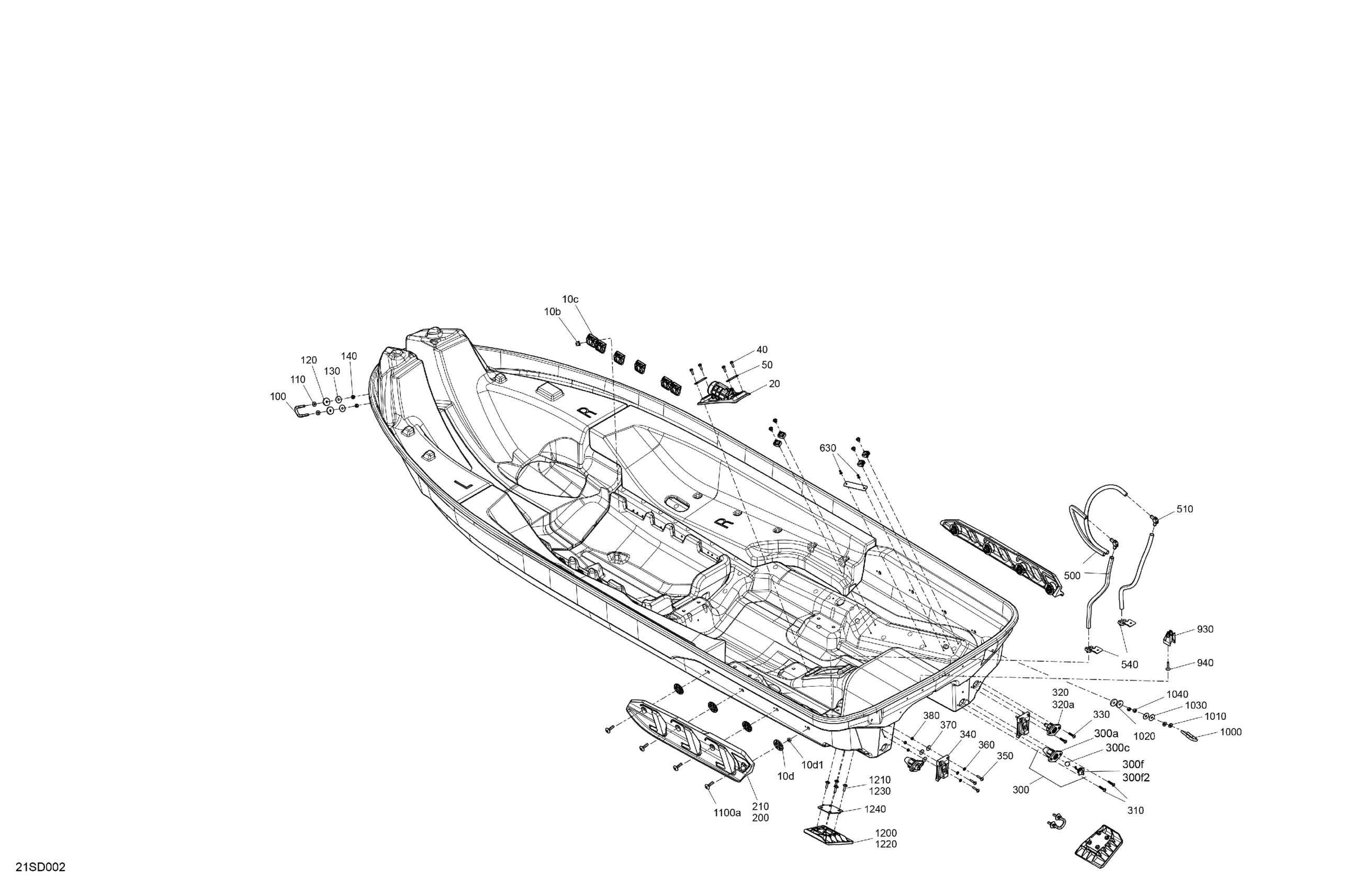 Sea-doo North America - GTX 170 - 11RA - STD package - Blue Abyss,2024 07- Body - Hull Diagram