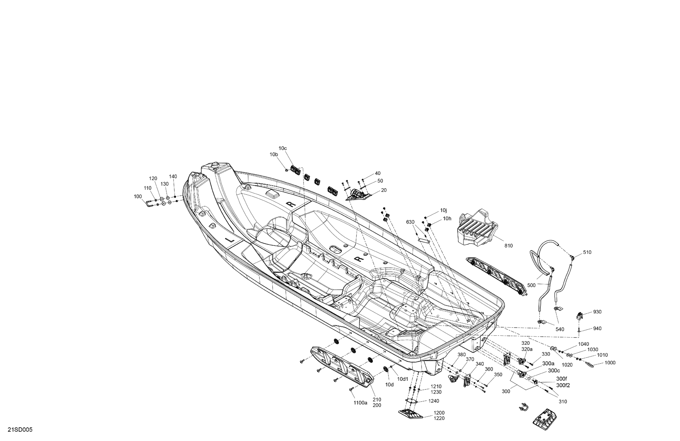 Sea-doo North America - GTX 300 - 15RE - STD package - Blue Abyss,2024 07- Body - Hull Diagram