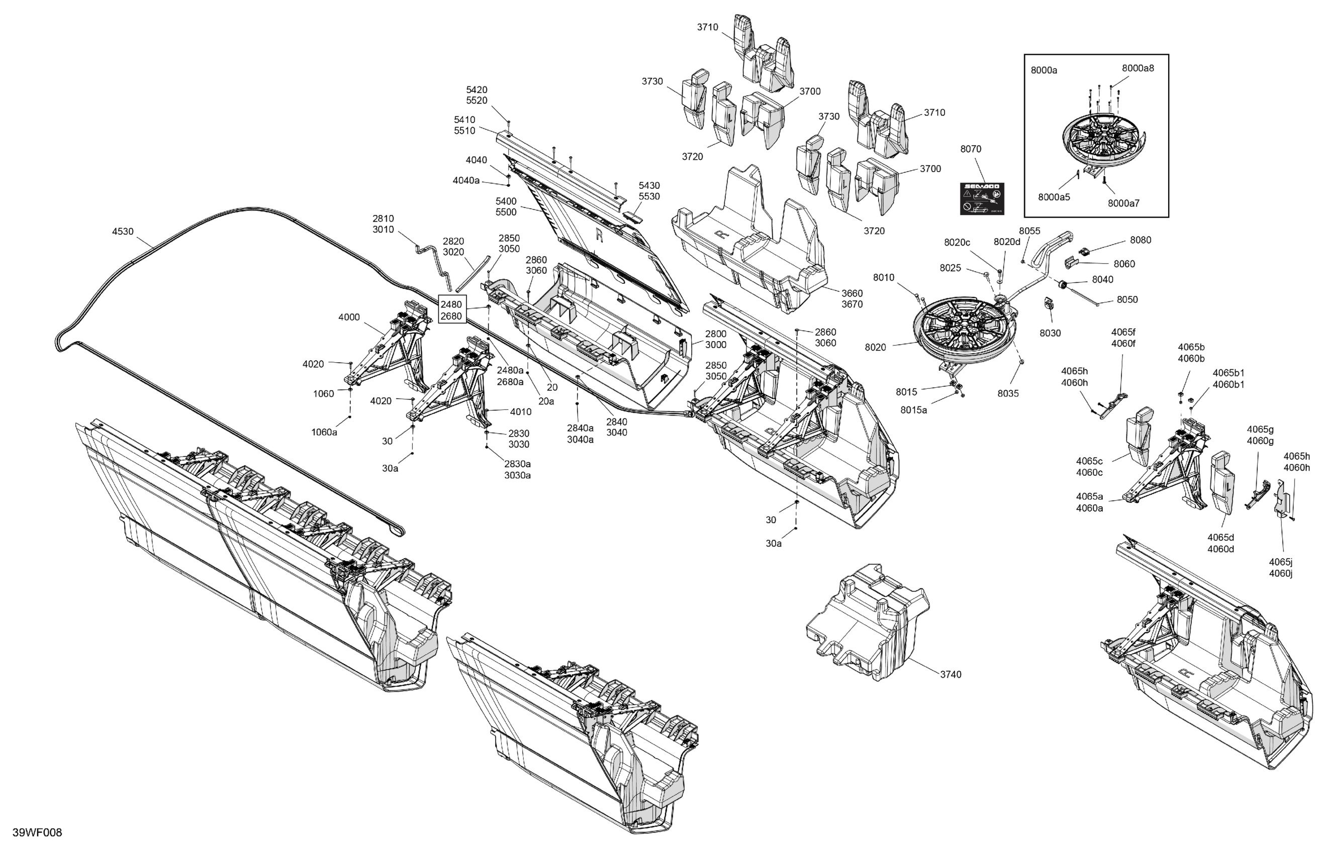 Sea-doo North America - LTD 18 - 300 - 55TF - Dusty Navy - Trailer Galv - CAT-1-30-101 - 2026 05- HULL - Central Float Deflector Diagram