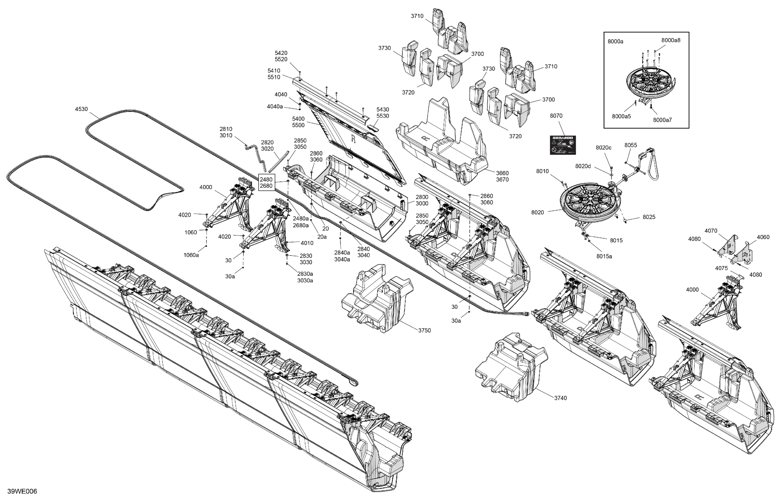 Sea-doo North America - LTD 21 - 230 - 55SK - Dusty Navy - Trailer Paint - CAT2A - 2025 05- HULL - Central Float Deflector Diagram
