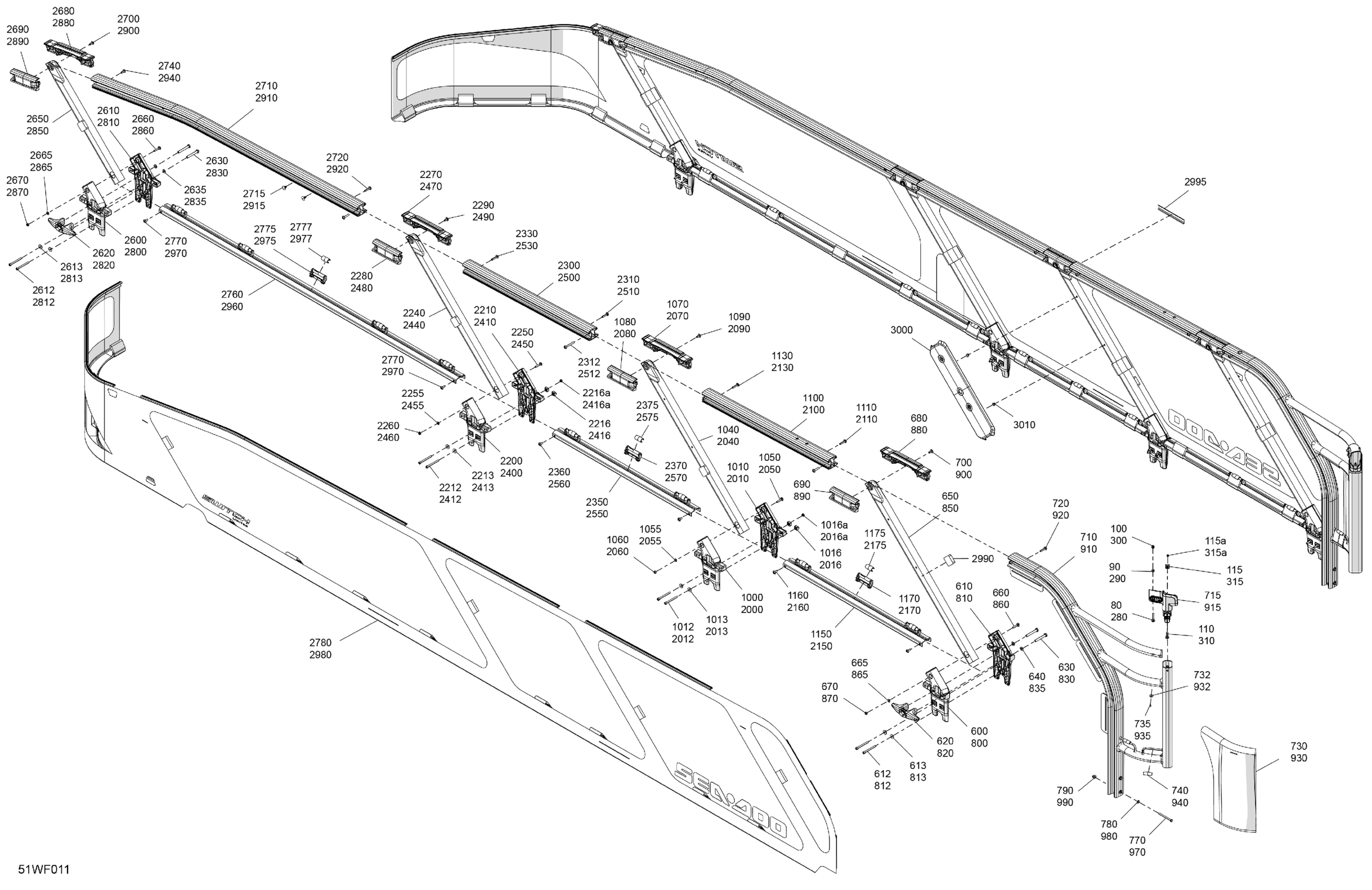 Sea-doo North America - LTD 21 - 300 - 55TA - Dusty Navy - Trailer Galv - CAT-1-30-101 - 2026 11- GUARD RAILS - System Assembly Diagram