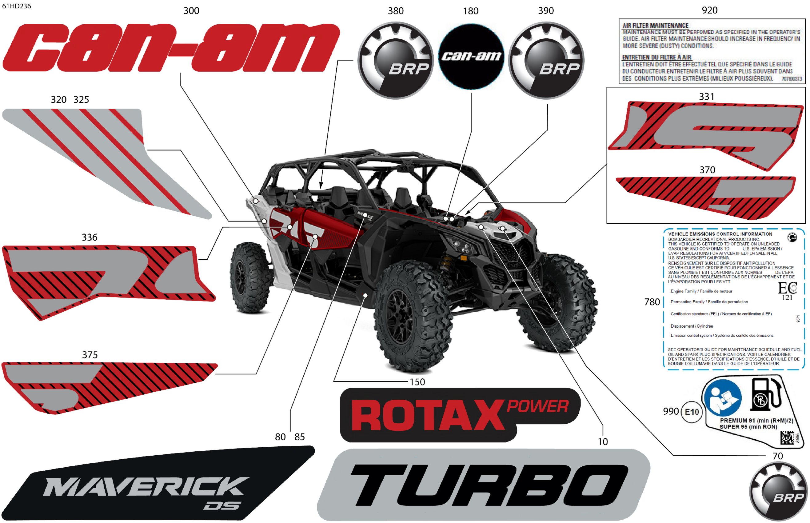 Can-Am Maverick MAX Turbo - DS - 7WRF - Fiery Red Metallic - 64" Width, 2024 Body - Decals Diagram