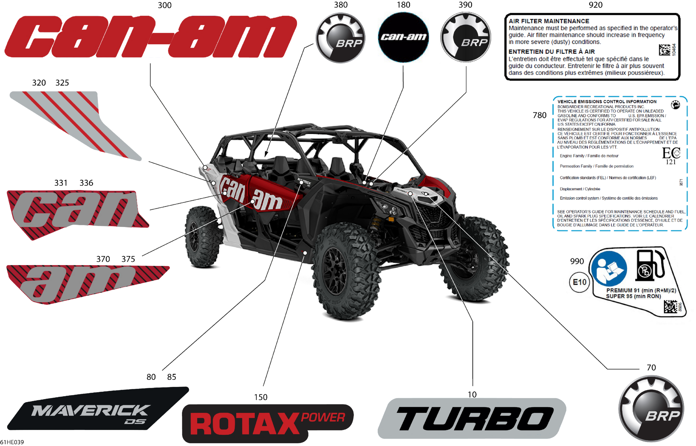 Can-Am Maverick MAX - TURBO - DS - 7WSF - Fiery Red Metallic - 64" Width, 2025 Body - Decals Diagram