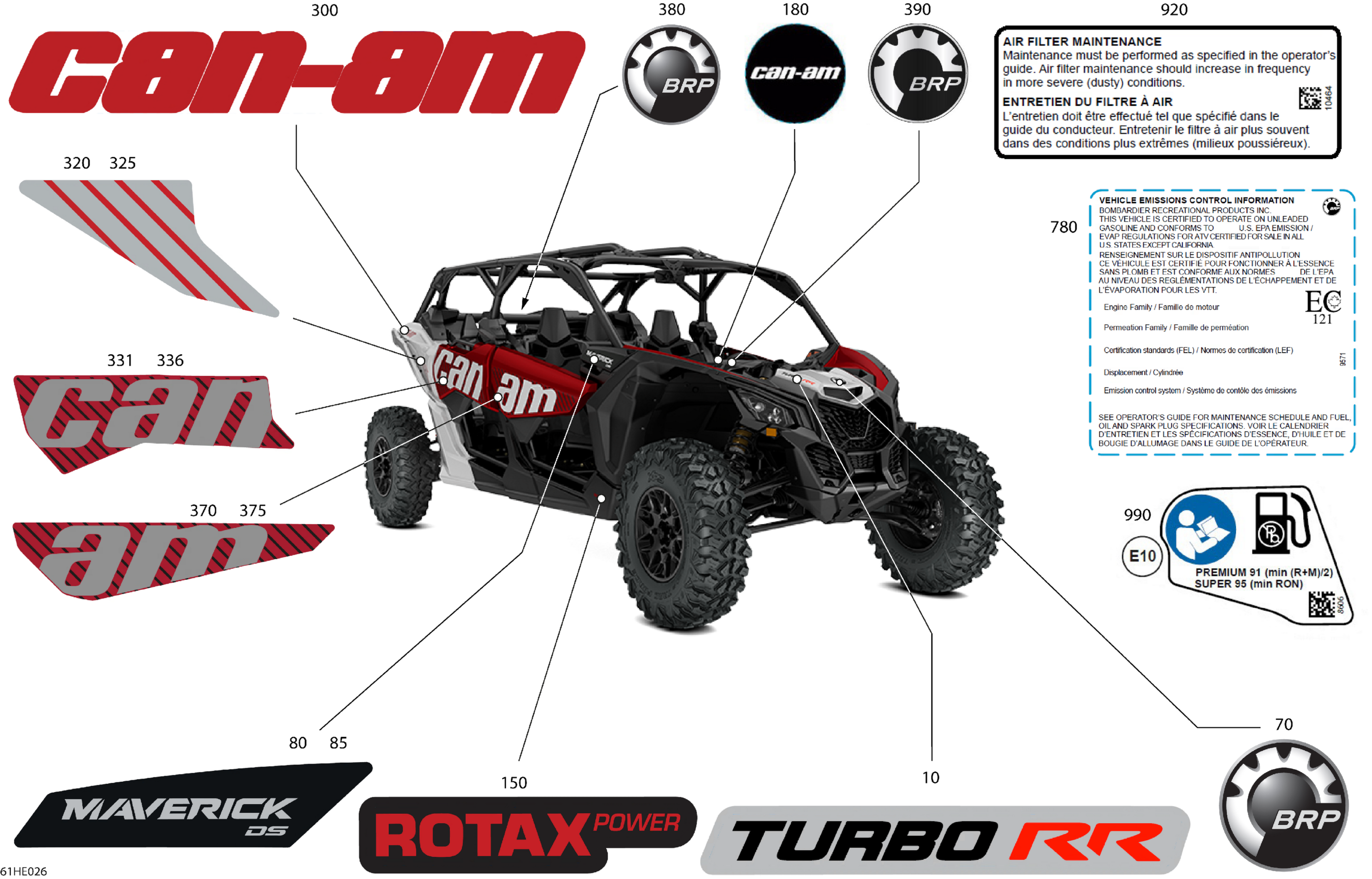 Can-Am Maverick MAX - TURBO RR - DS - 7USD - Fiery Red Metallic - 64" Width, 2025 Body - Decals Diagram