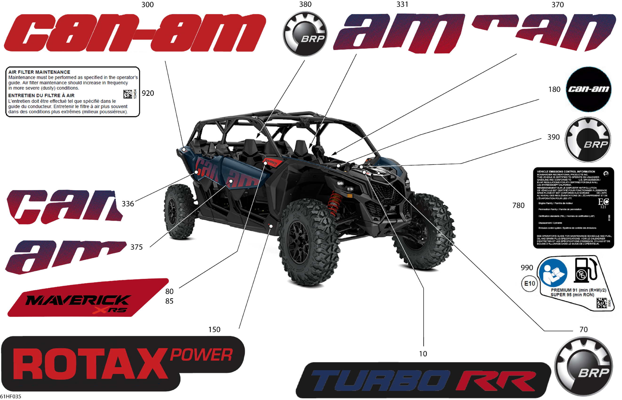 Can-Am Maverick Max - TURBO RR - DS - 7UTD - Dusty Navy Satin - 64" Width, 2026 Body - Decals Diagram