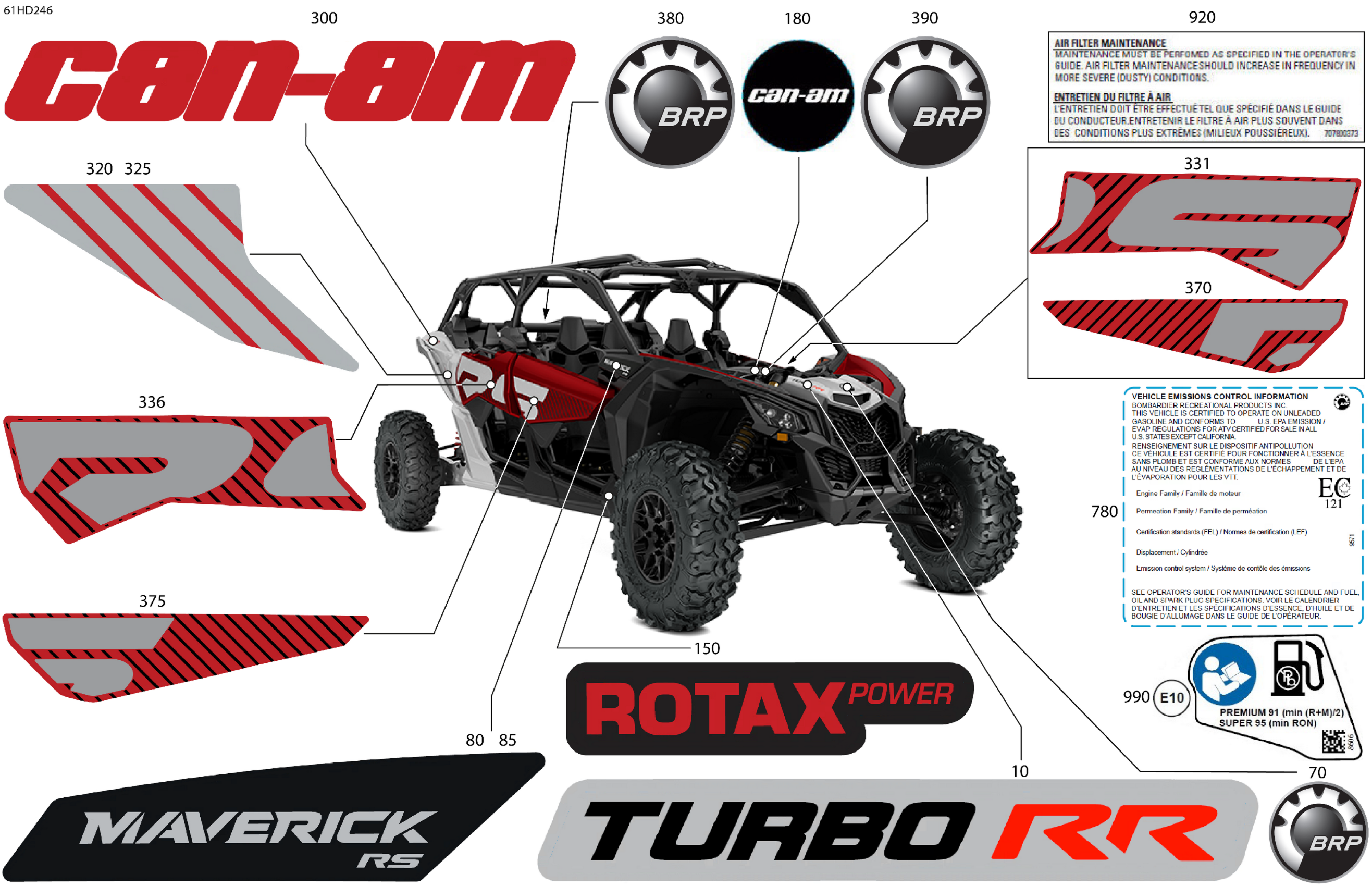Can-Am Maverick MAX Turbo RR - RS - 7YRD - Fiery Red Metallic - 72" Width, 2024 Body - Decals Diagram