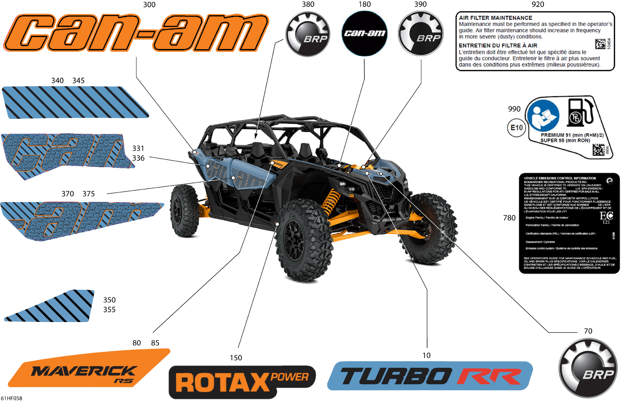 Can-Am Maverick Max - TURBO RR - RS - 7YTB - Scandi Blue - 72" Width, 2026 Body - Decals Diagram