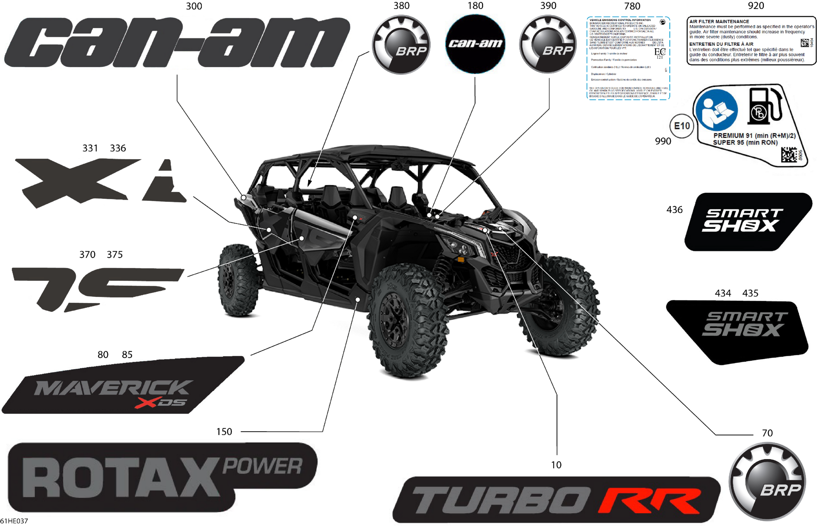 Can-Am Maverick MAX - TURBO RR - XDS SAS - 7VSN - Timeless Black Metallic - 64" Width, 2025 Body - Decals Diagram