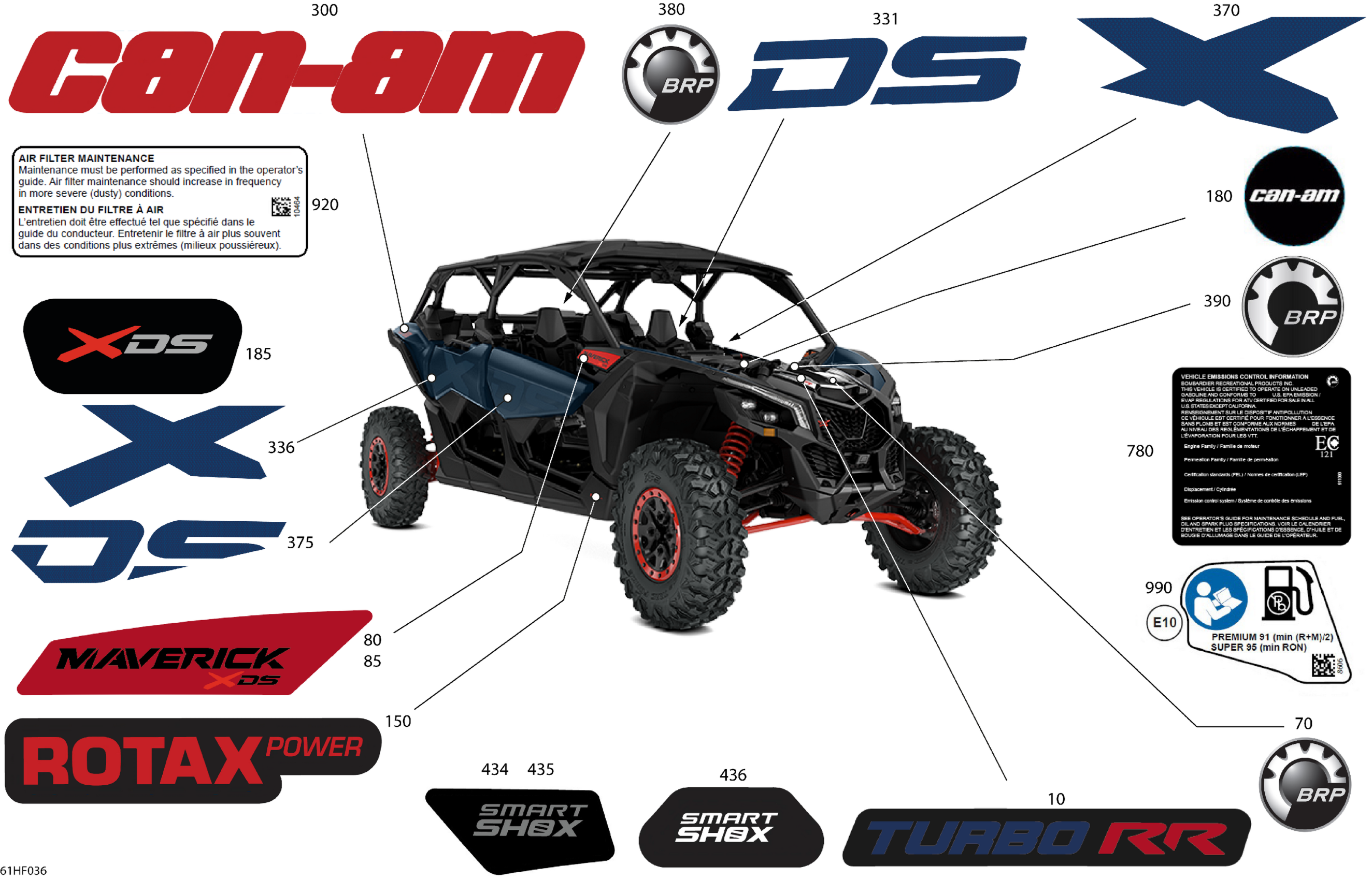 Can-Am Maverick Max - TURBO RR - XDS SAS - 7VTA - Dusty Navy Satin - 64" Width, 2026 Body - Decals Diagram