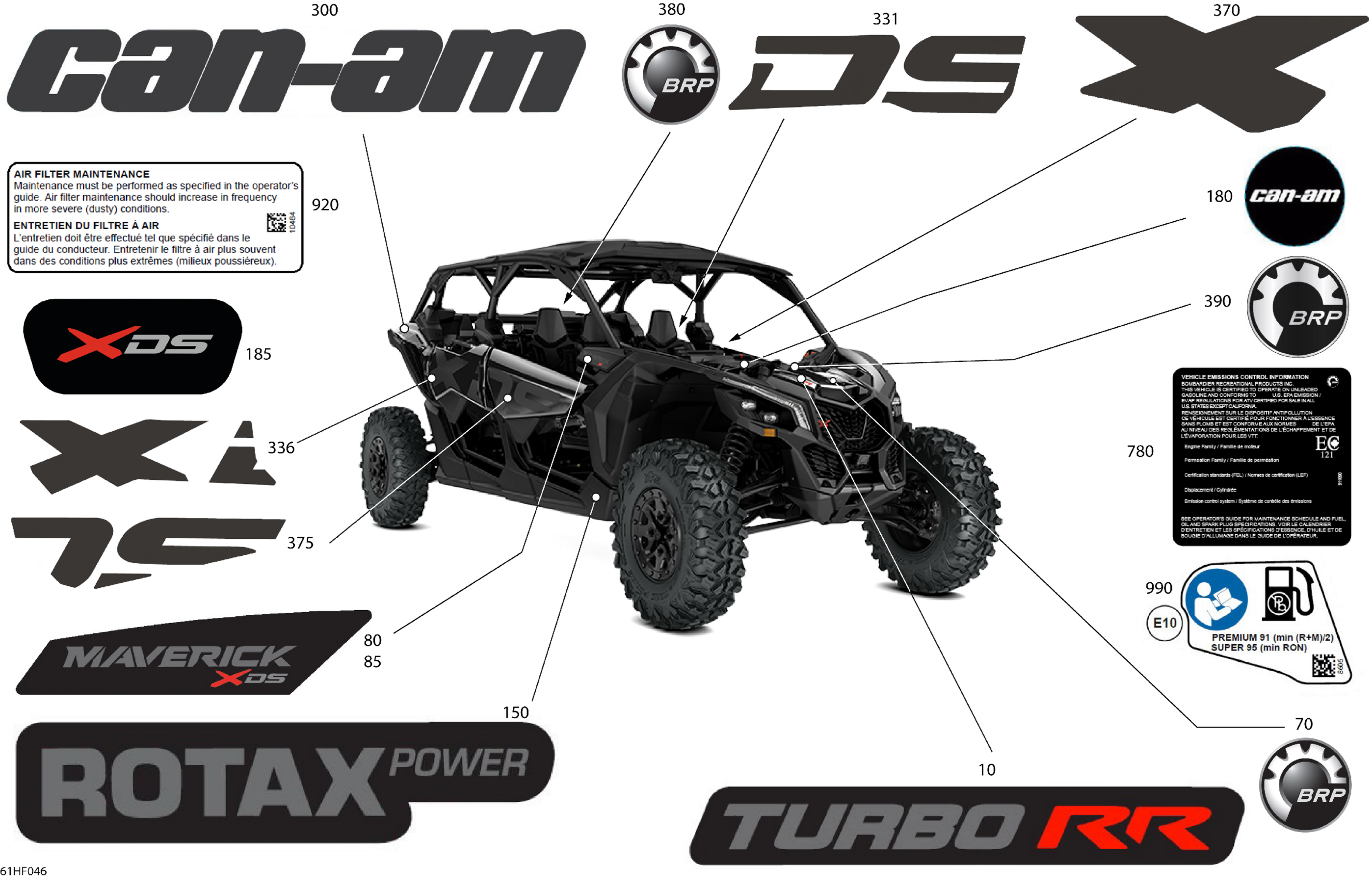 Can-Am Maverick Max - TURBO RR - XDS STD - 7VTT - Timeless Black Metallic - 64" Width, 2026 Body - Decals Diagram
