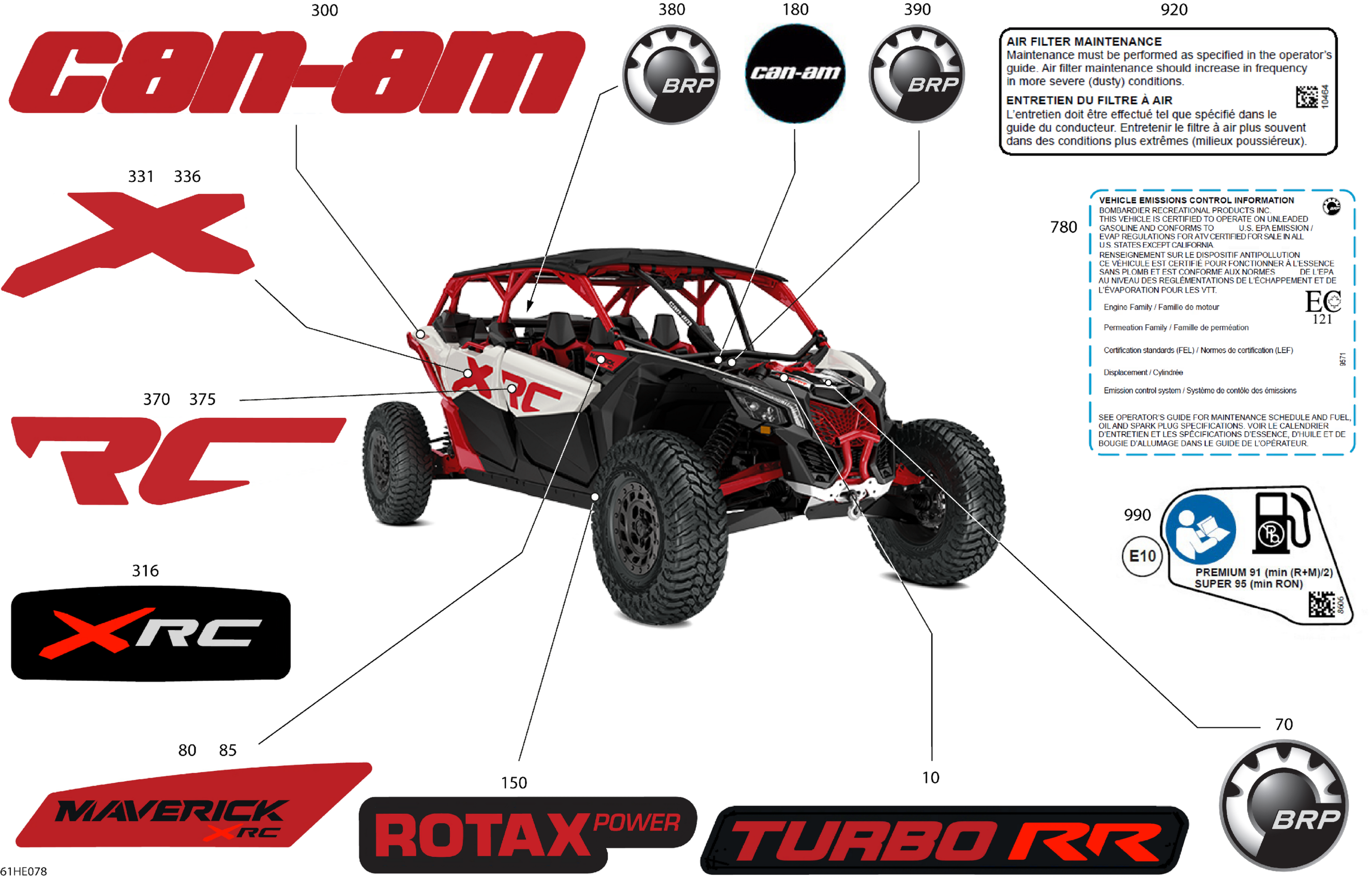 Can-Am Maverick MAX - TURBO RR - XRC - 9MSM - Hybrid White Pearl - 72" Width, 2025 Body - Decals Diagram