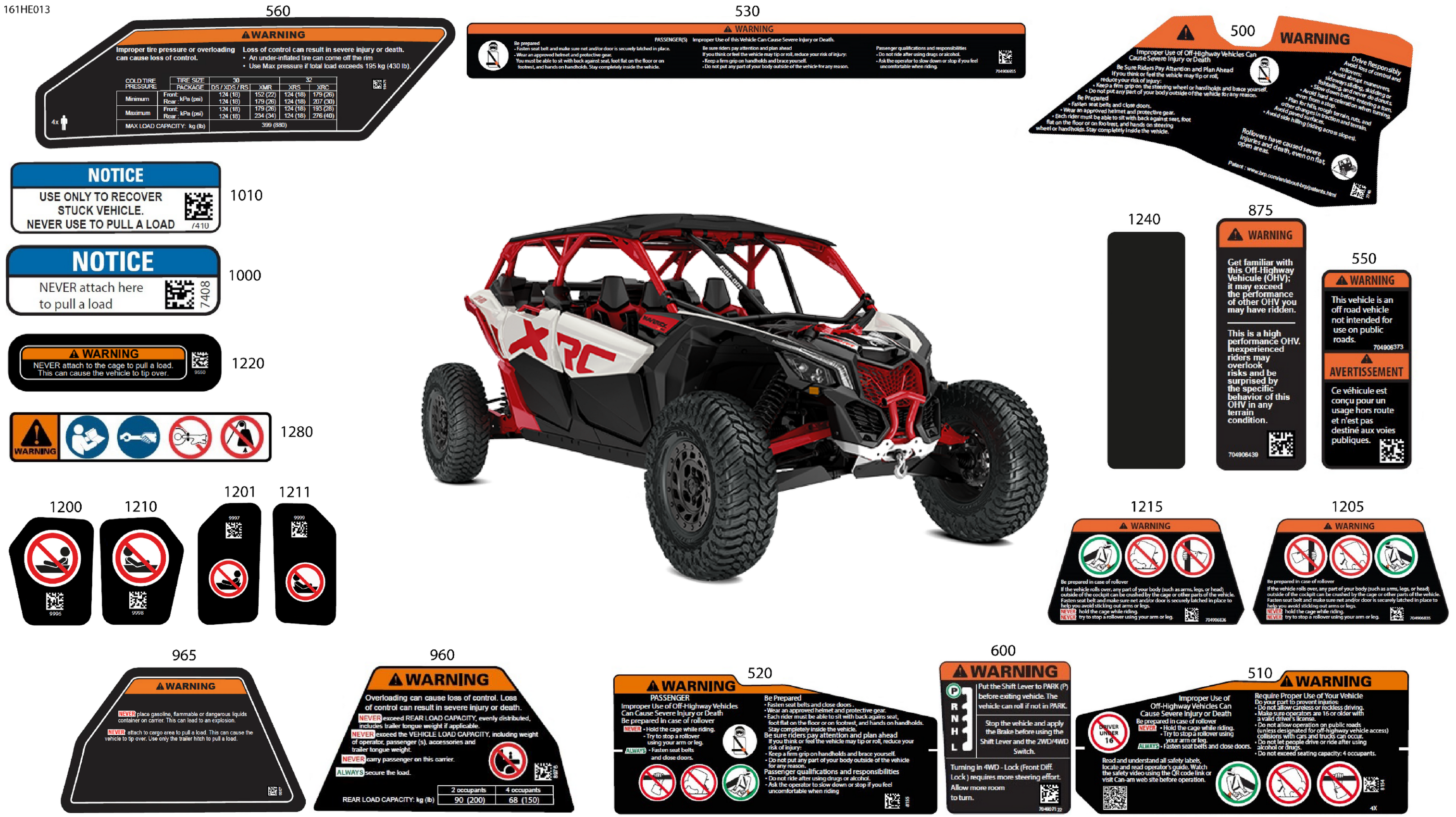 Can-Am Maverick MAX - TURBO RR - XRC - 9MSM - Hybrid White Pearl - 72" Width, 2025 Body - Warning Decals Diagram