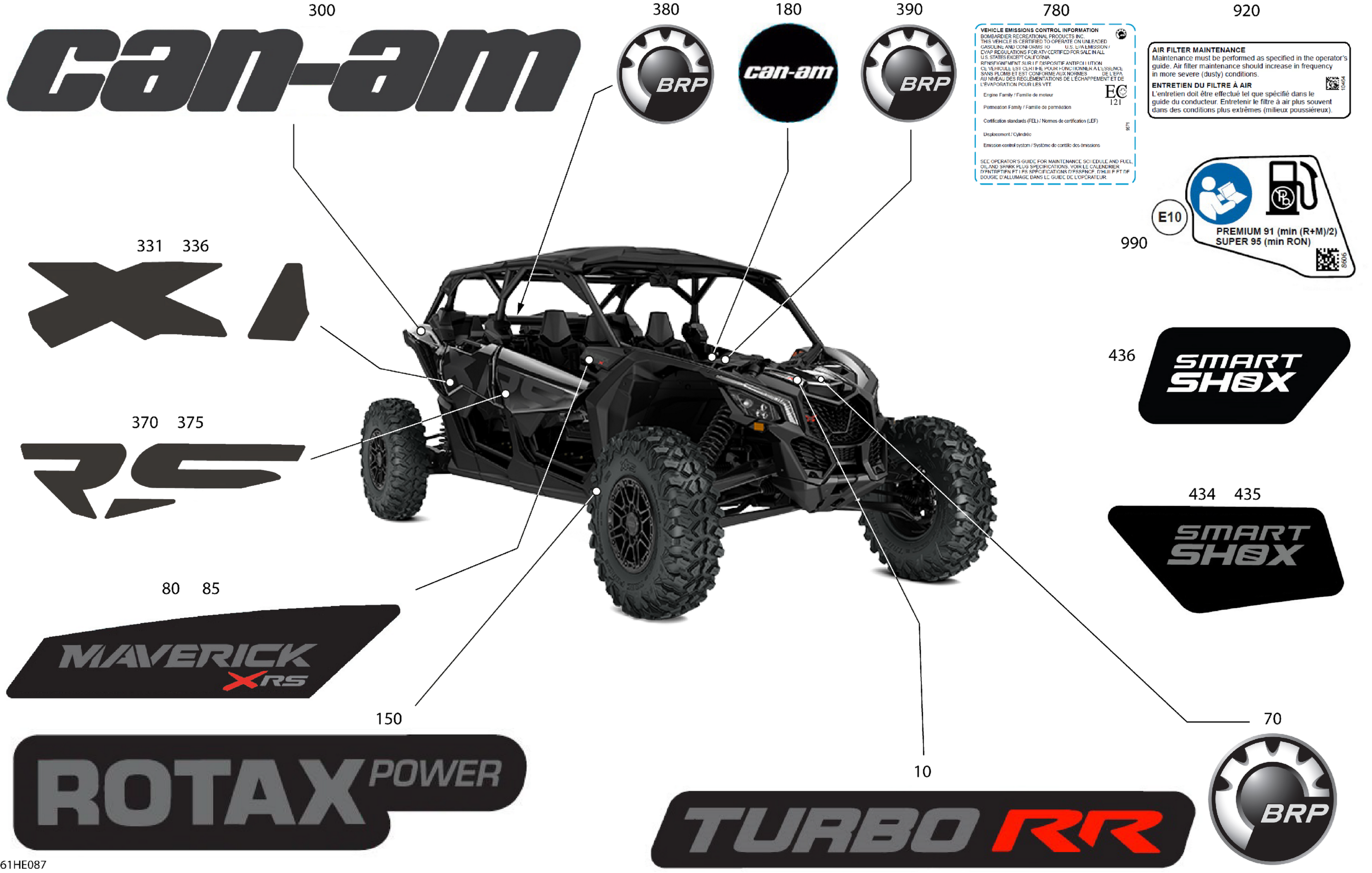 Can-Am Maverick MAX - TURBO RR - XRS SAS - 9NSH - Timeless Black Metallic - 72" Width, 2025 Body - Decals Diagram