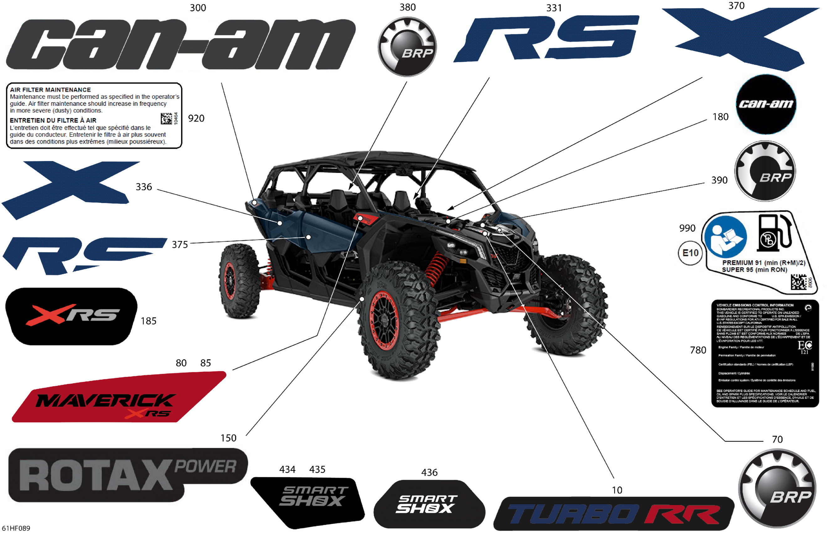 Can-Am Maverick Max - TURBO RR - XRS SAS - 9NT4 - Dusty Navy Satin - 72" Width, 2026 Body - Decals Diagram
