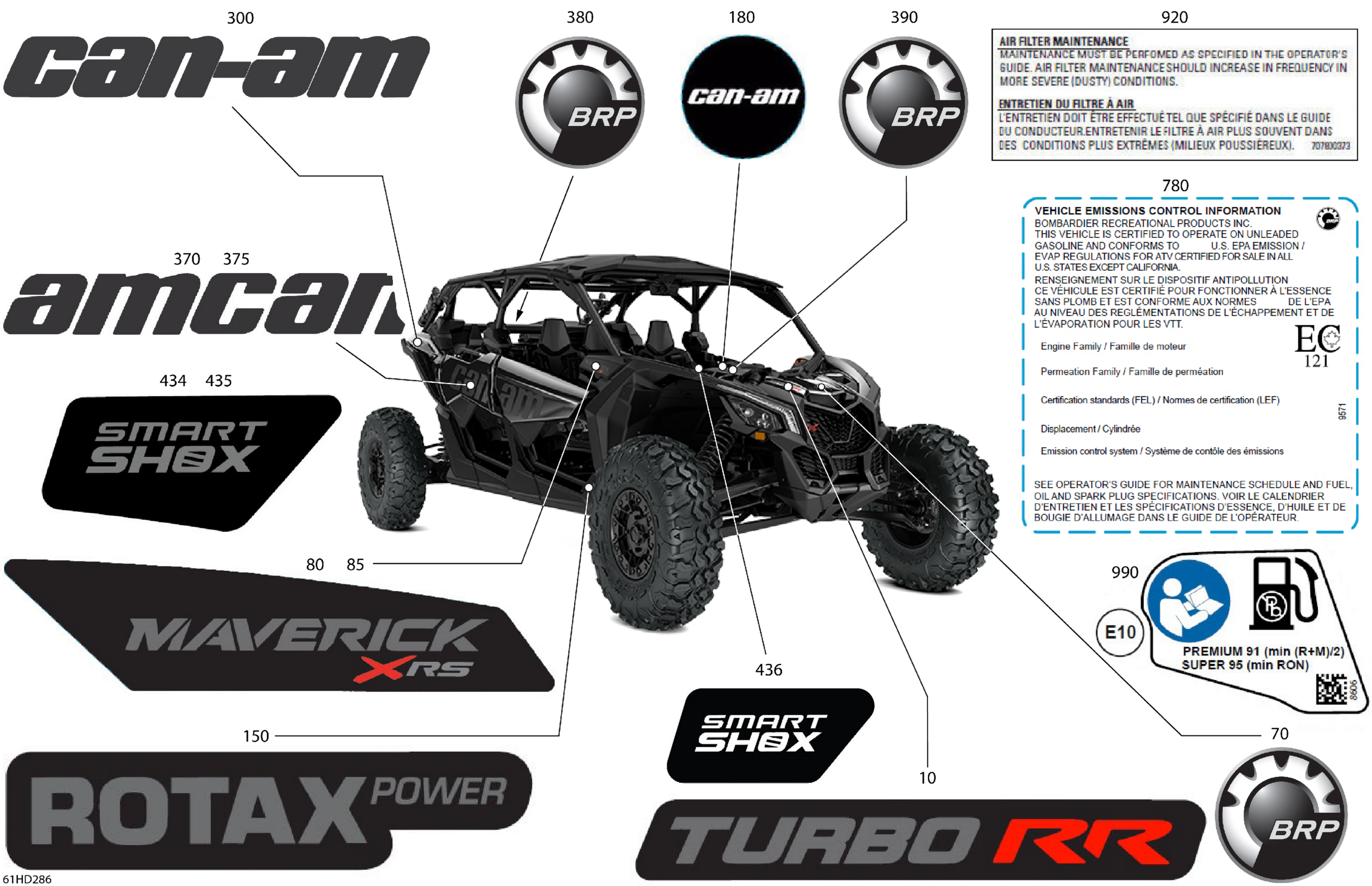 Can-Am Maverick MAX Turbo RR - XRS Smart Shock - 9NRH - Timeless Black Metallic - 72" Width SAS, 2024 Body - Decals Diagram