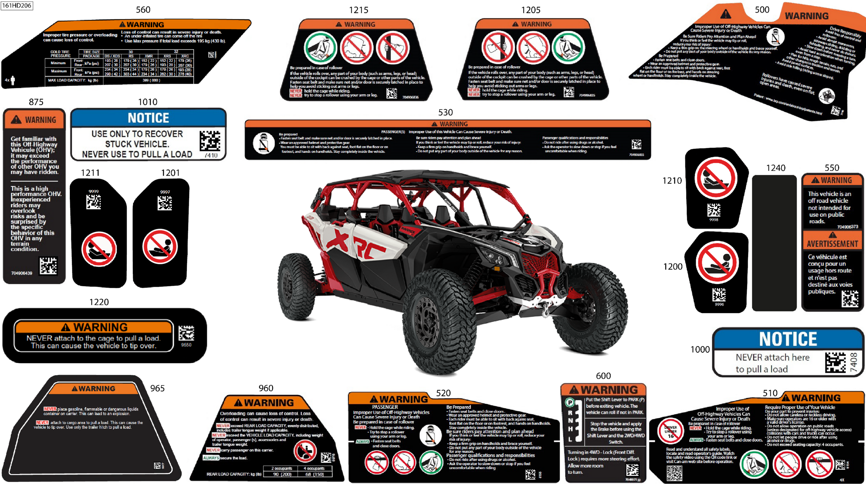 Can-Am Maverick MAX Turbo RR - XRS Smart Shock - 9NRM - Dazzling Blue - 72" Width SAS, 2024 Body - Warning Decals Diagram