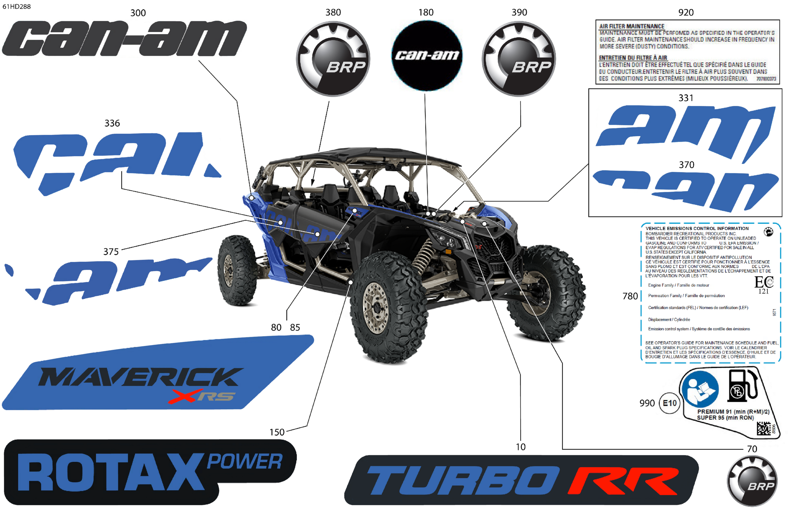 Can-Am Maverick MAX Turbo RR - XRS STD - 9NRK - Dazzling Blue - 72" Width, 2024 Body - Decals Diagram