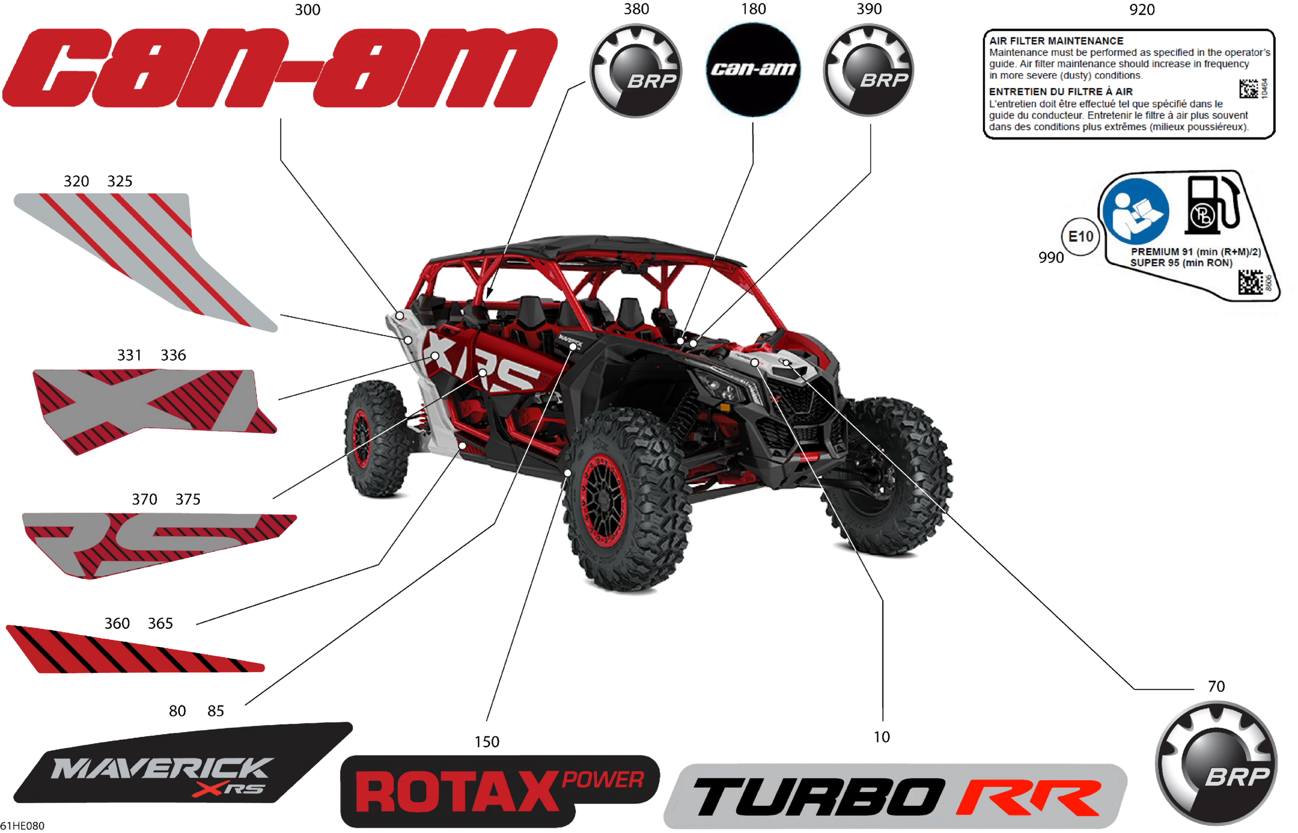 Can-Am Maverick MAX - TURBO RR - XRS STD - 9NSA - Fiery Red Metallic - 72" Width CALI, 2025 Body - Decals Diagram