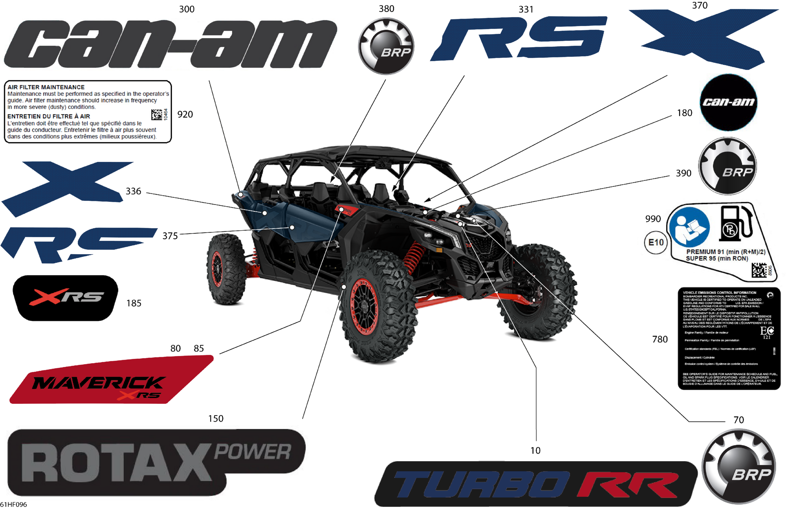 Can-Am Maverick Max - TURBO RR - XRS STD - 9NTJ - Dusty Navy Satin - 72" Width, 2026 Body - Decals Diagram