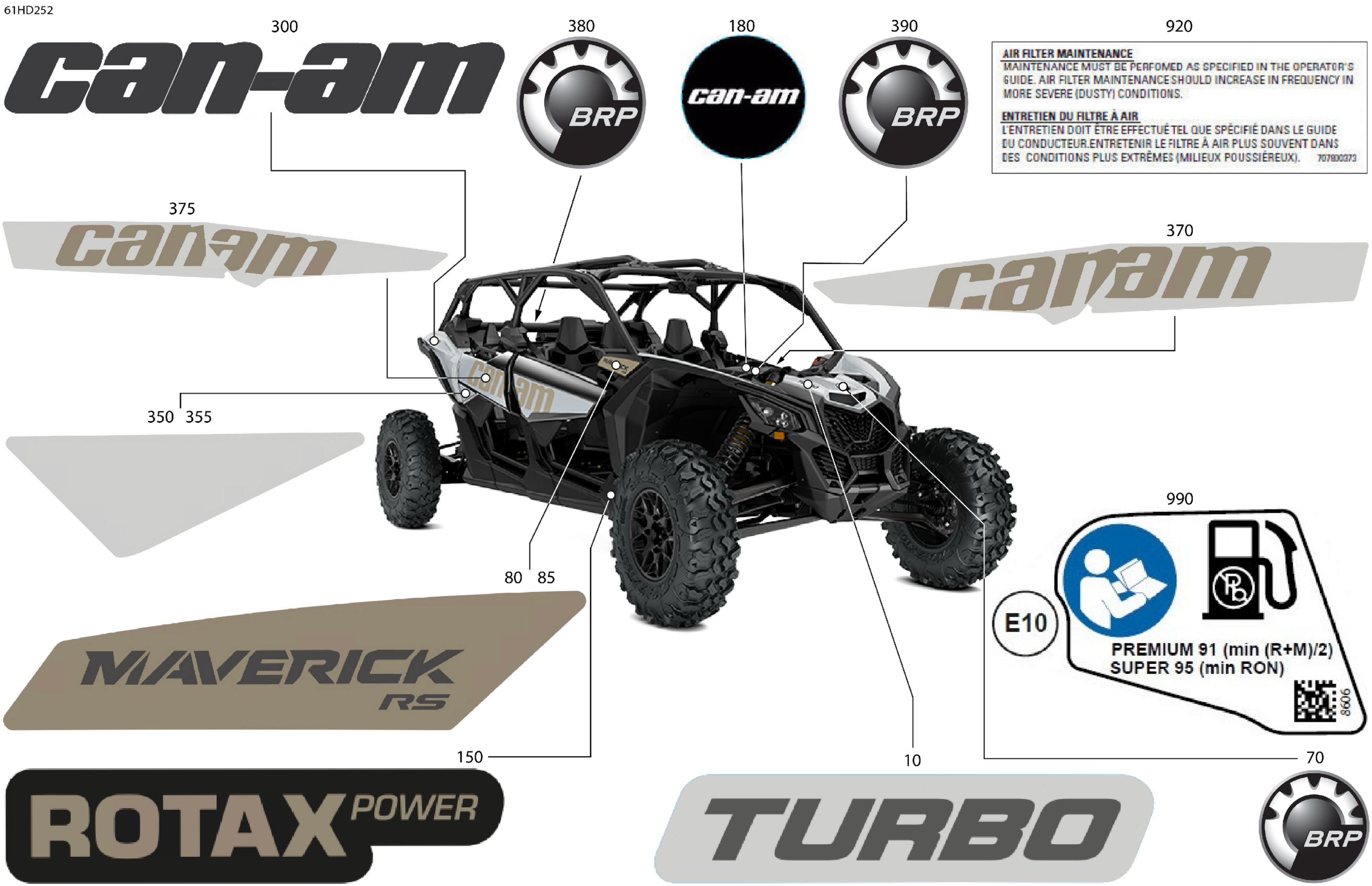 Can-Am Maverick MAX Turbo - RS - 7YRK - Catalyst Gray - 72" Width CALI, 2024 Body - Decals Diagram