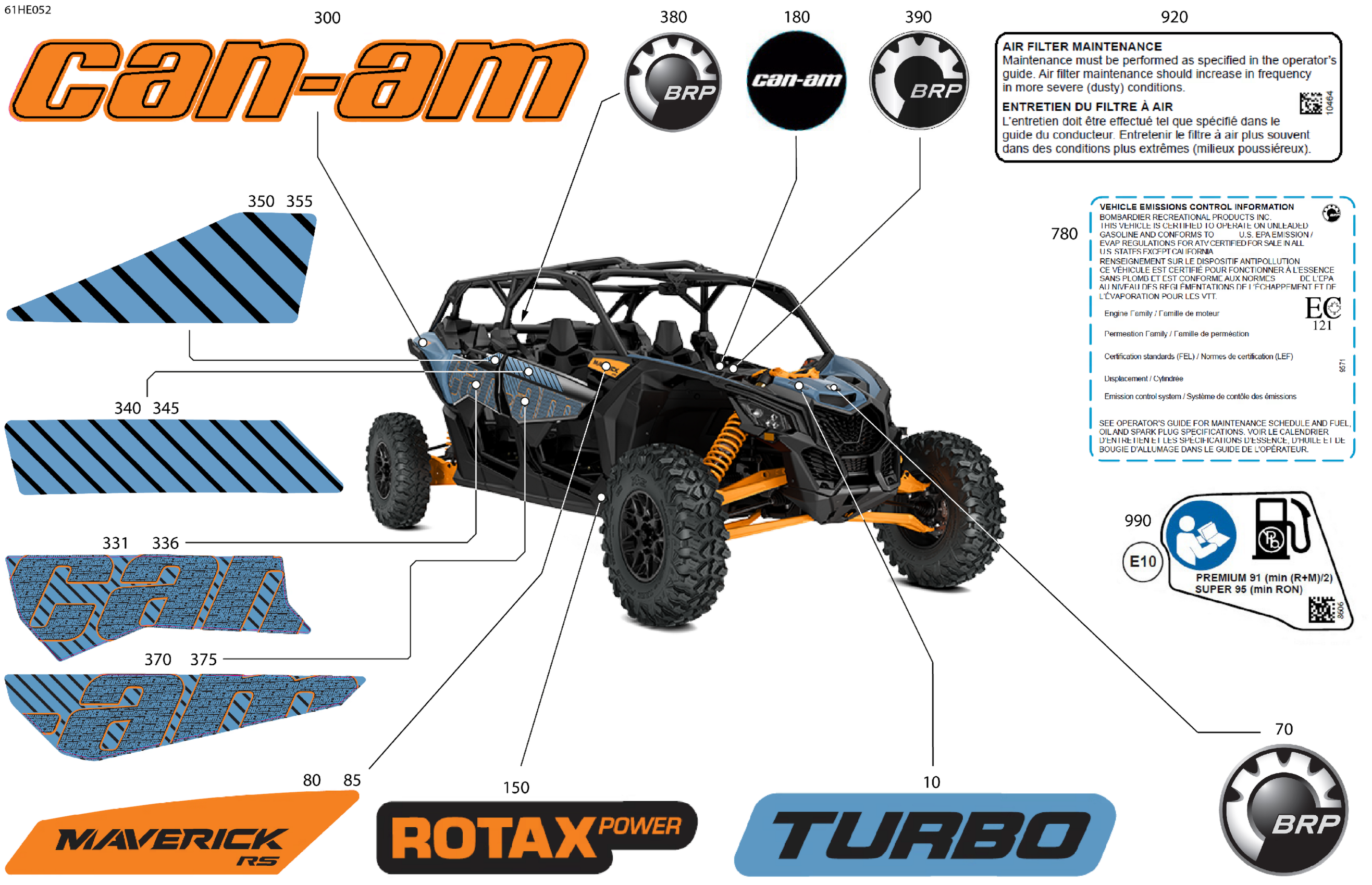 Can-Am Maverick MAX - TURBO - RS - 7YSH - Scandi Blue - 72" Width, 2025 Body - Decals Diagram
