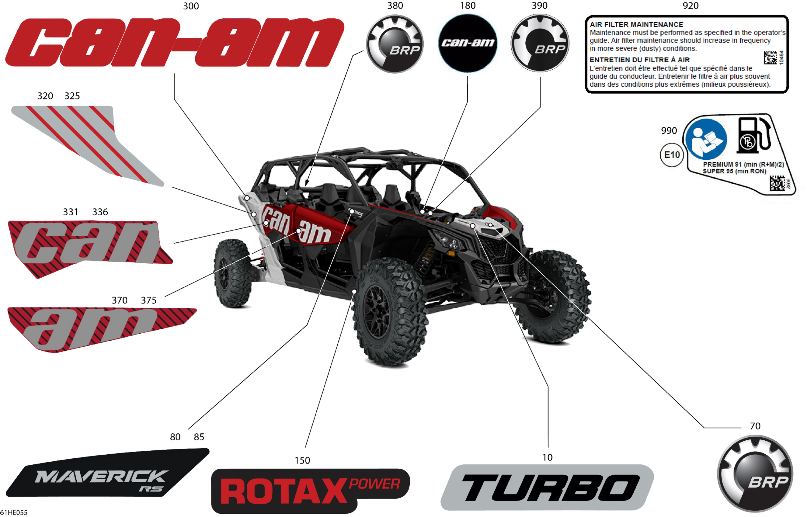 Can-Am Maverick MAX - TURBO - RS - 7YSL - Fiery Red Metallic - 72" Width CALI, 2025 Body - Decals Diagram