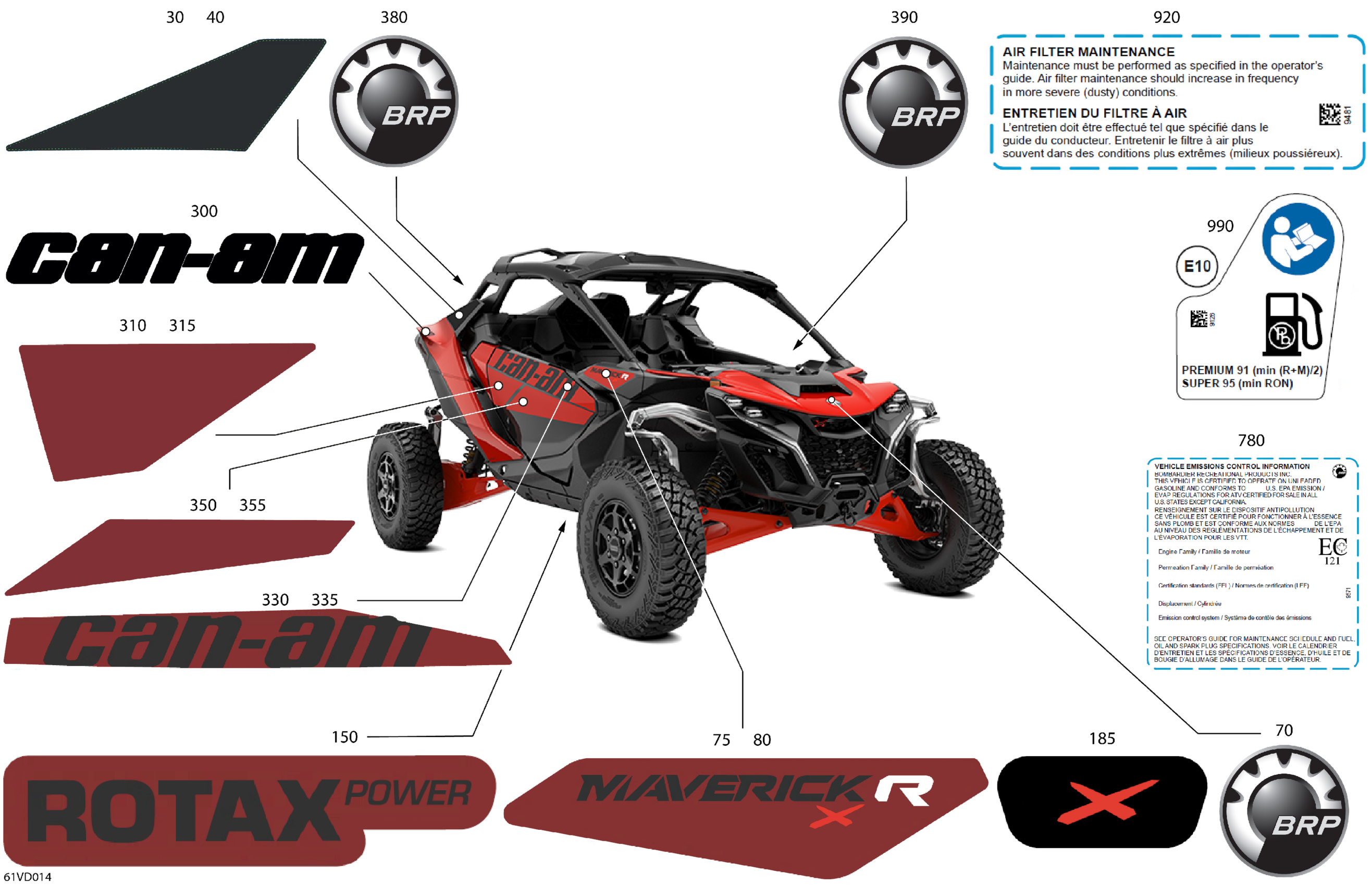 Can-Am Maverick R 996NT - X - 8GRC - Legion Red - 77" Width, 2024 Body - Decals Diagram