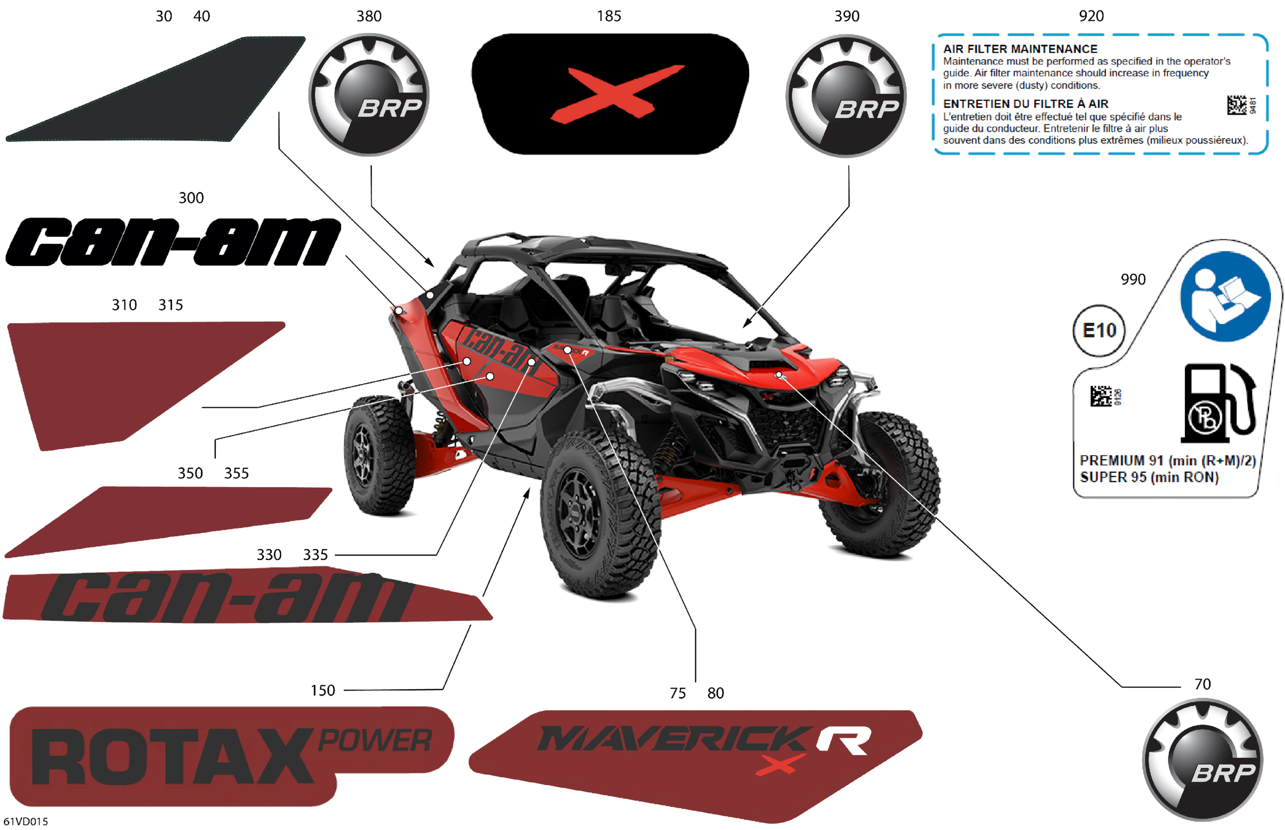 Can-Am Maverick R 996NT - X - 8GRD - Legion Red - 77" Width CALI, 2024 Body - Decals Diagram