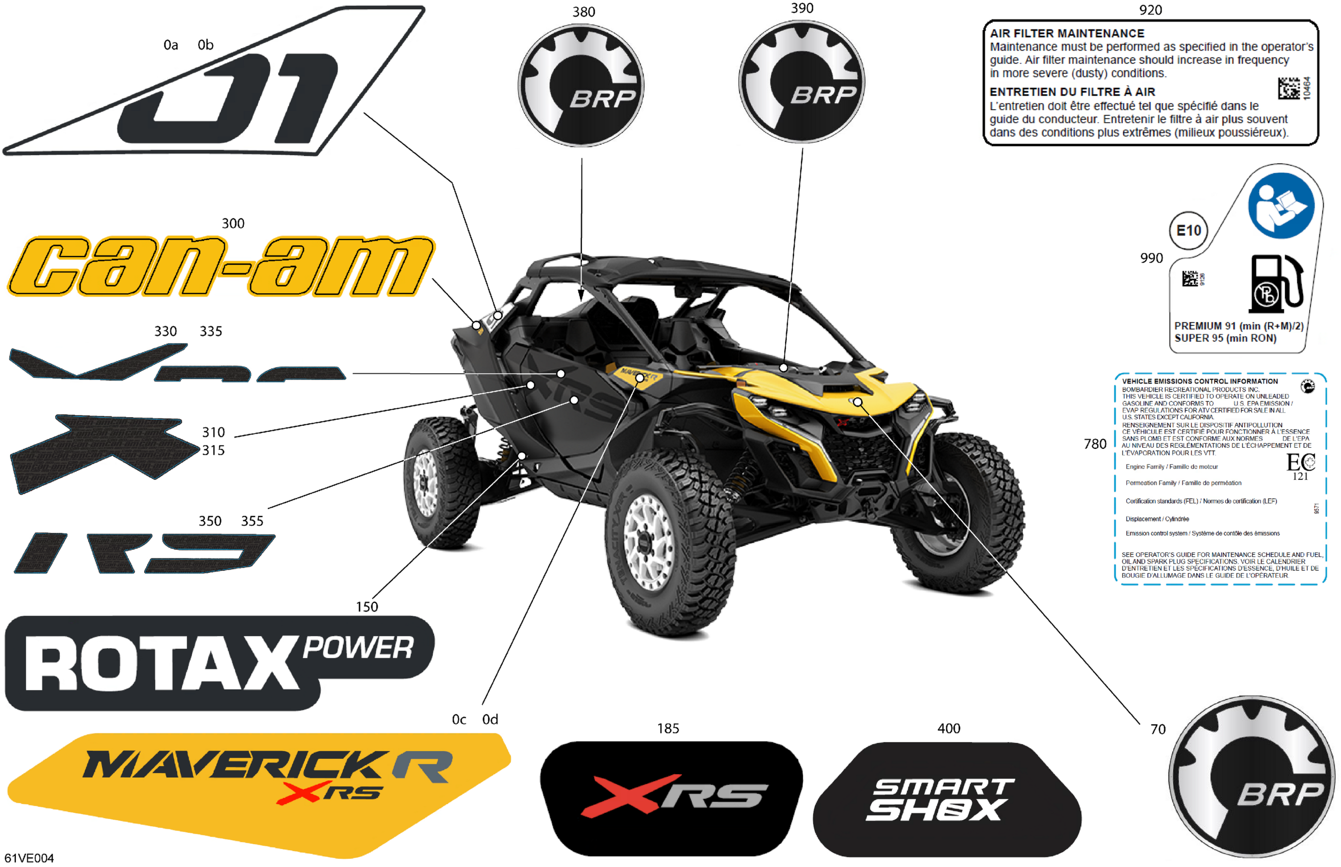 Can-Am Maverick R - 996NT - XRS - 6JSD - Neo Yellow - 77" Width, 2025 Body - Decals Diagram